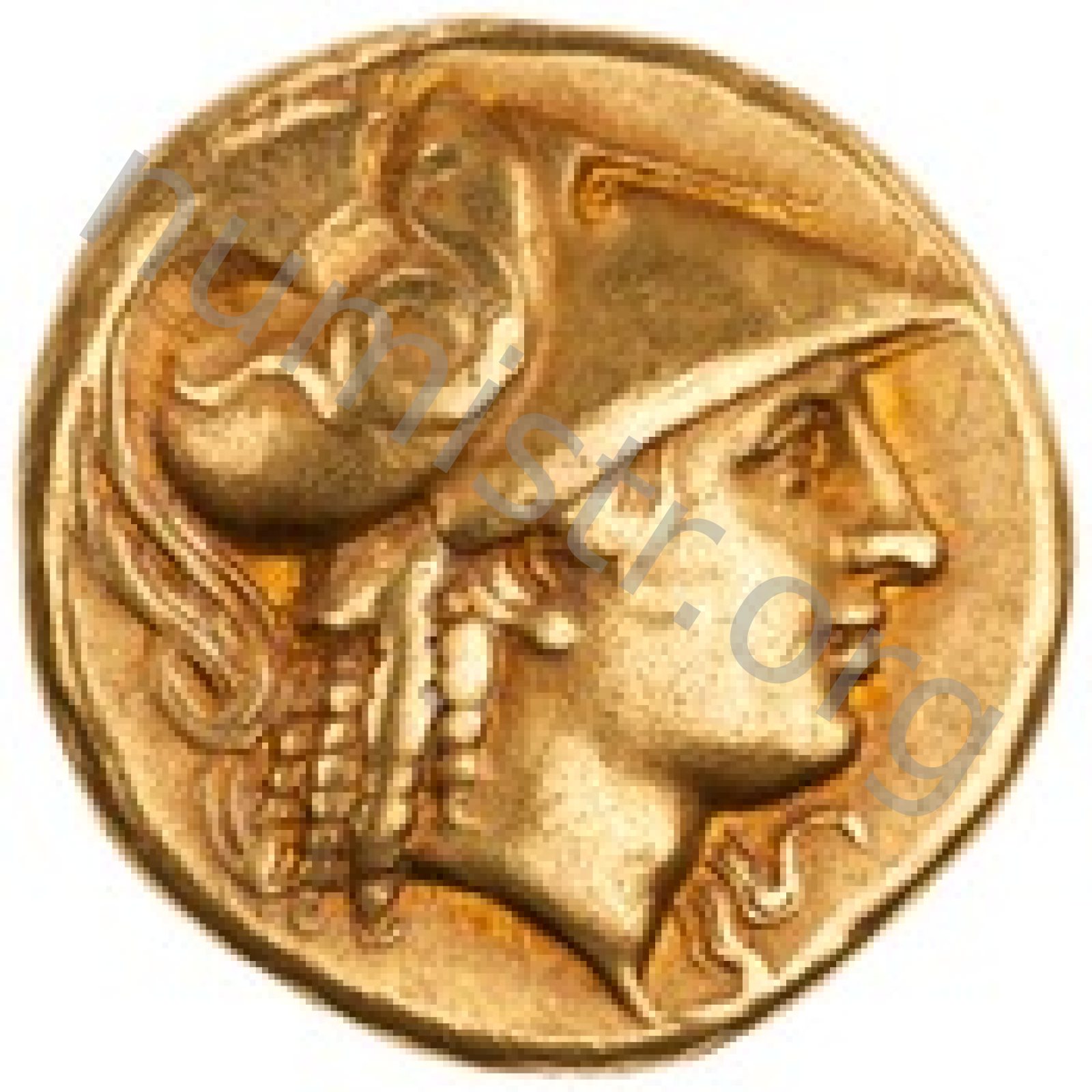 Sağda armalı Korint miğferi takan Athena başı