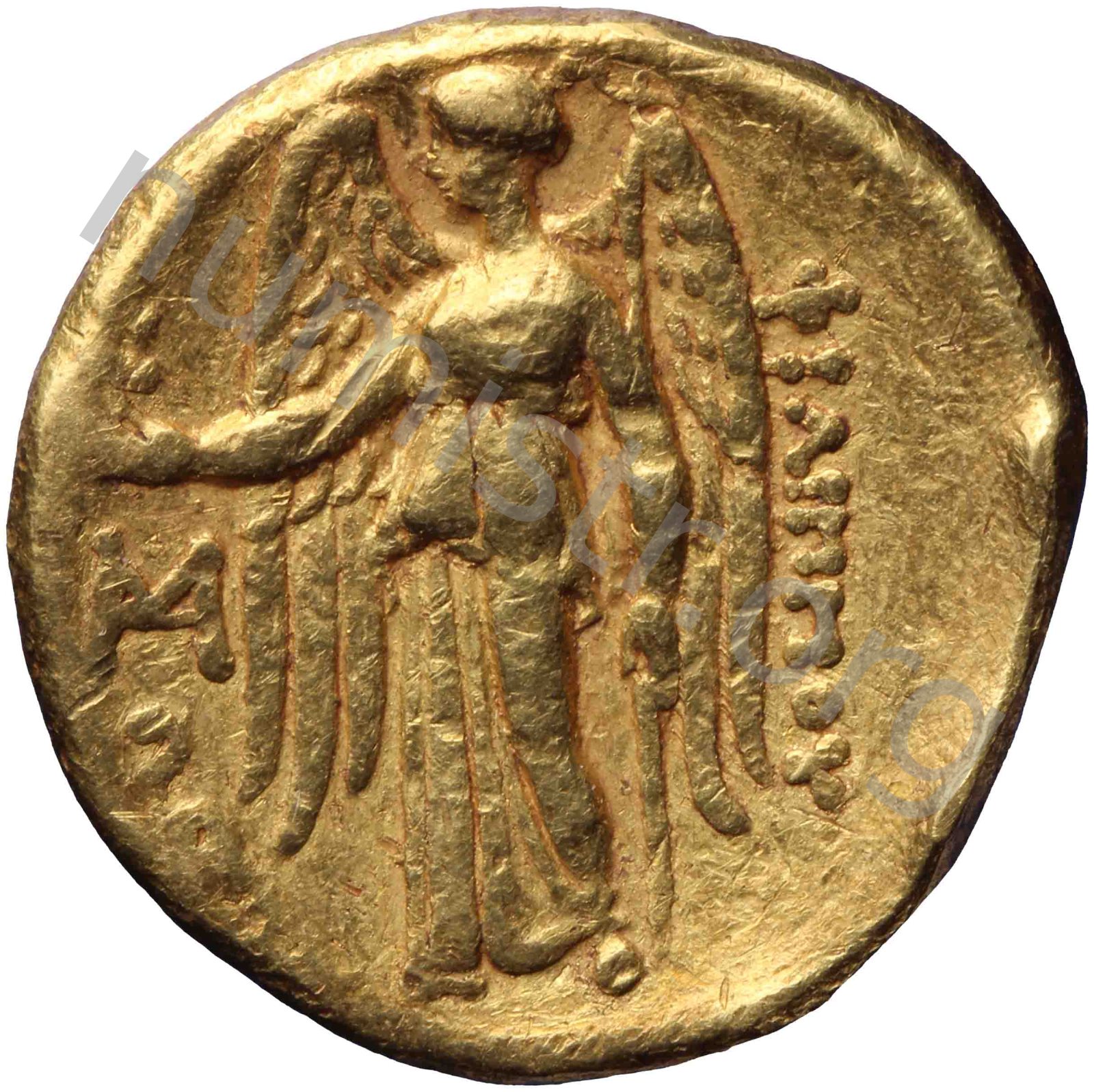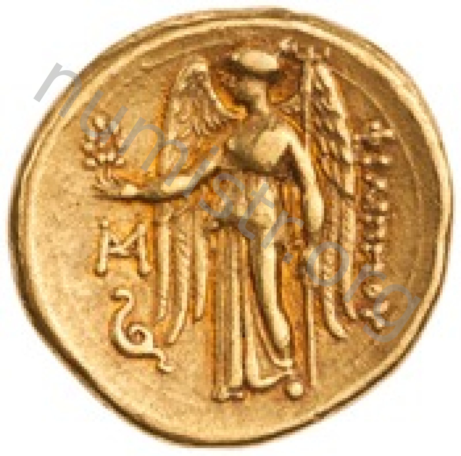 Nike standing left holding wreath in right hand and stylis in her left hand -[en]