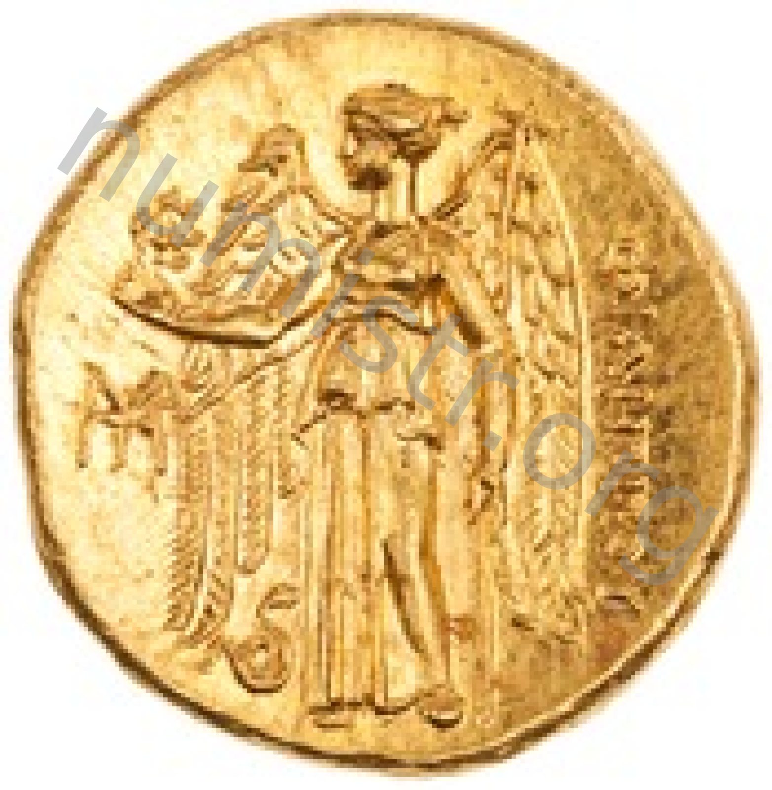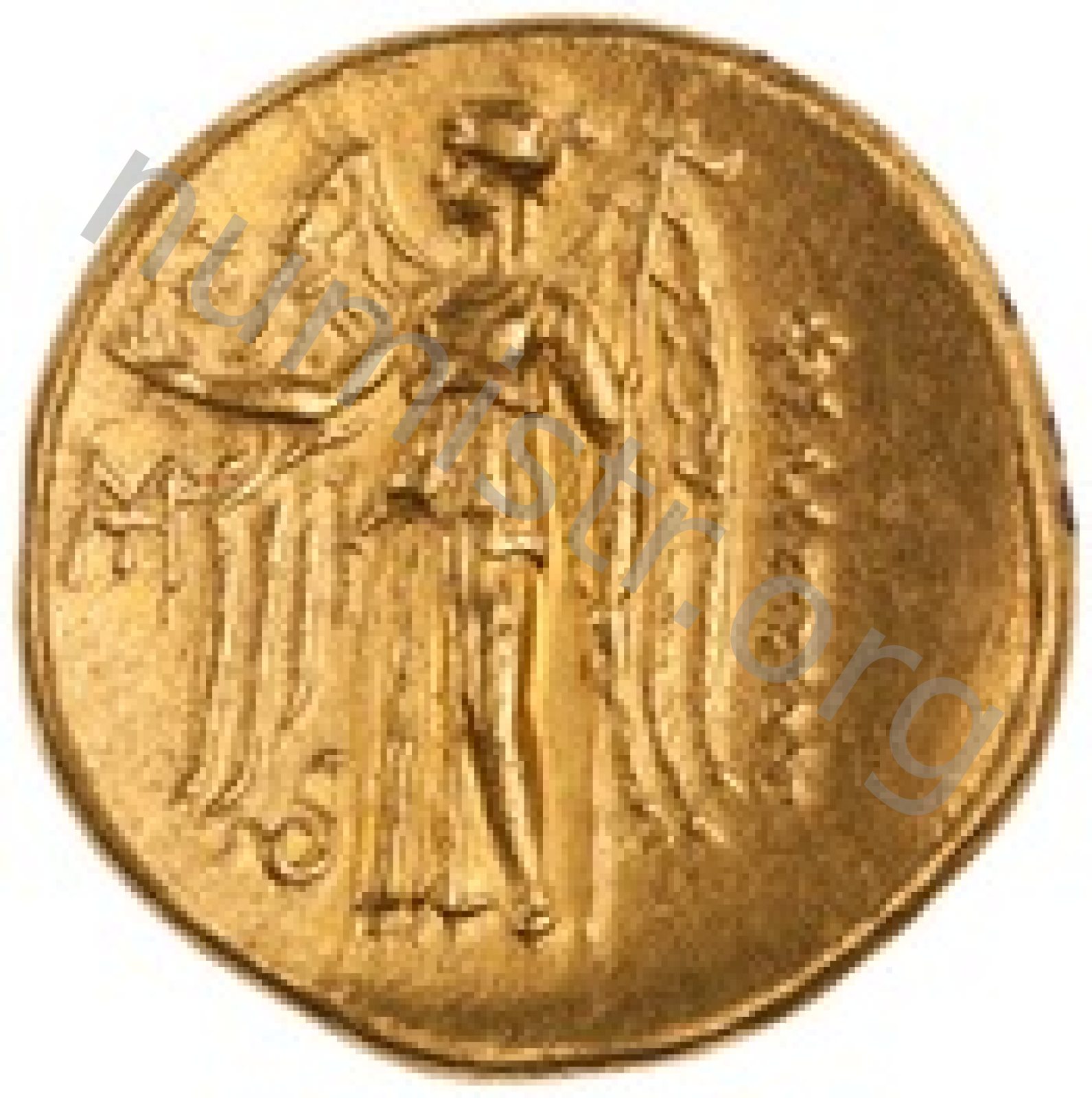 Nike standing left holding wreath in right hand and stylis in her left hand -[en]