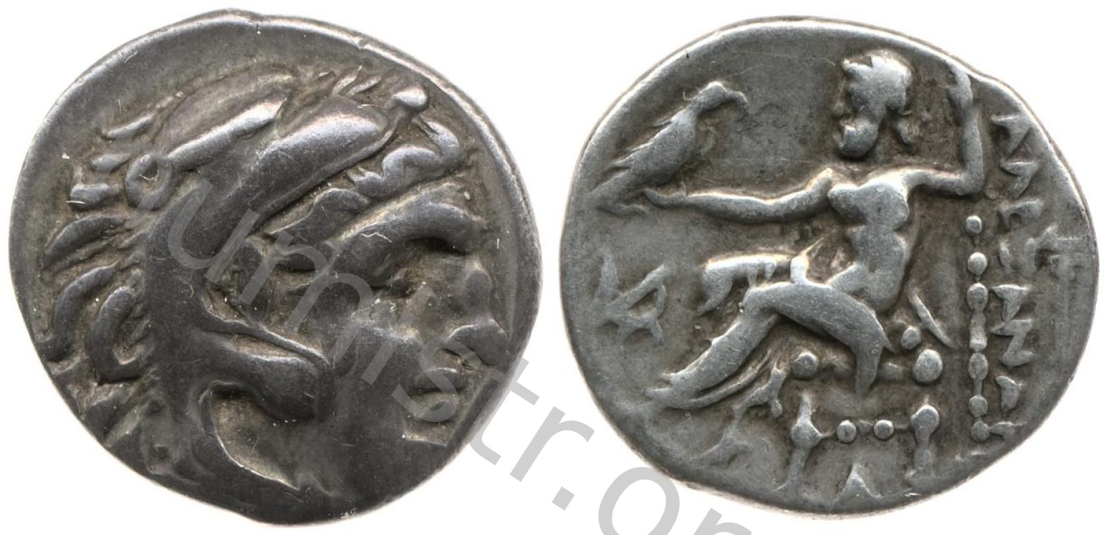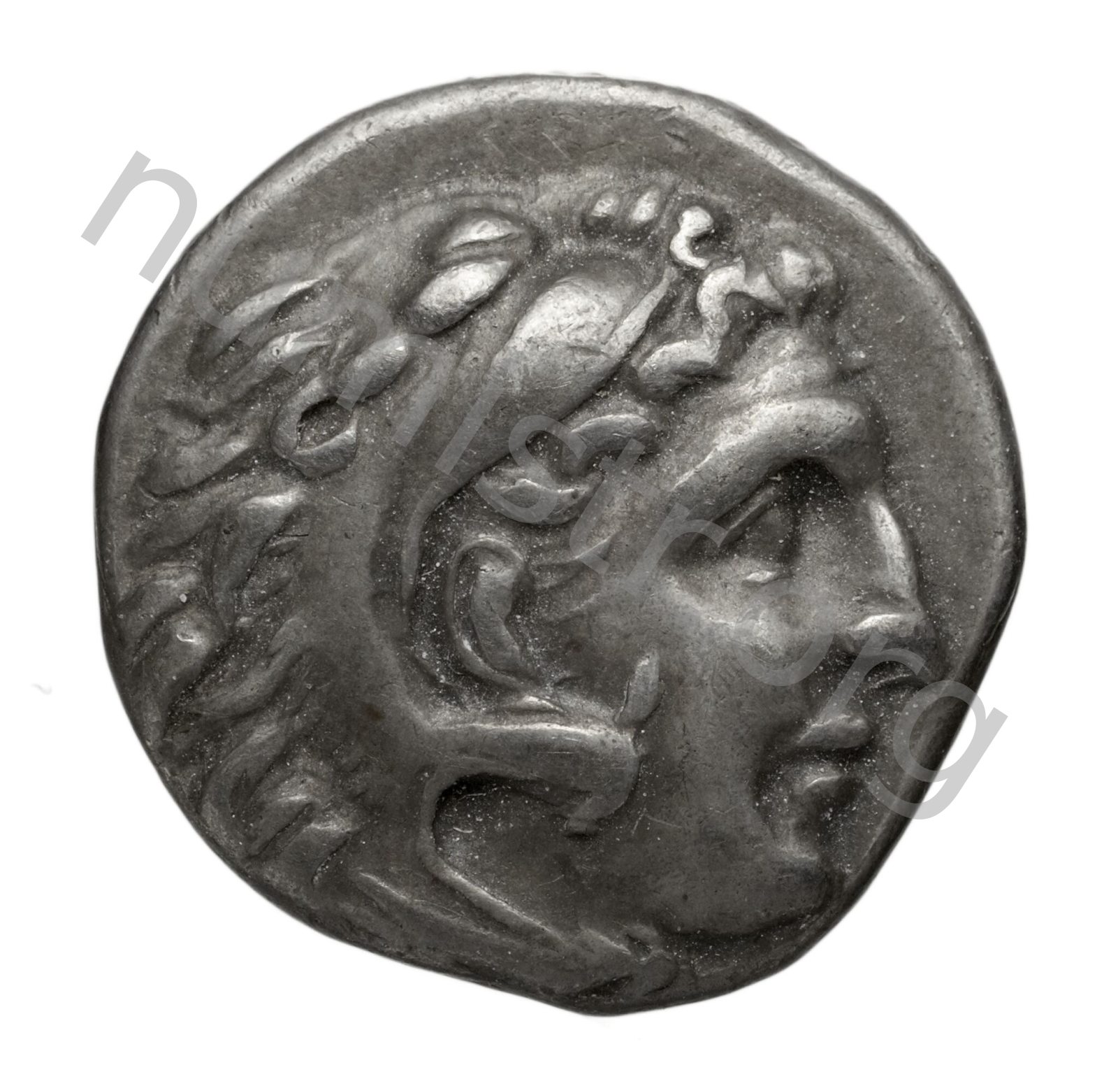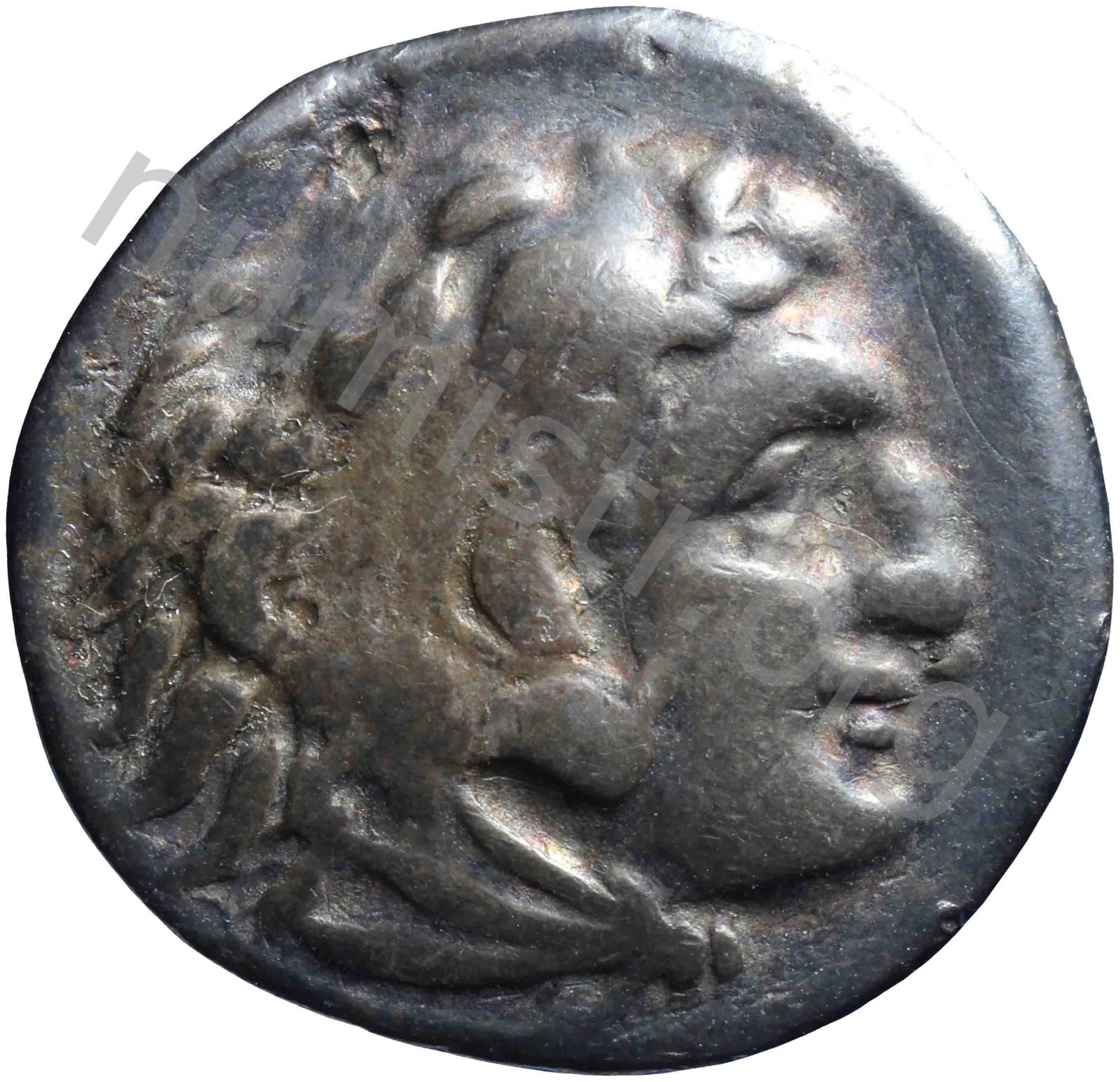 Head of beardless Heracles right wearing lion skin headdress -[en]