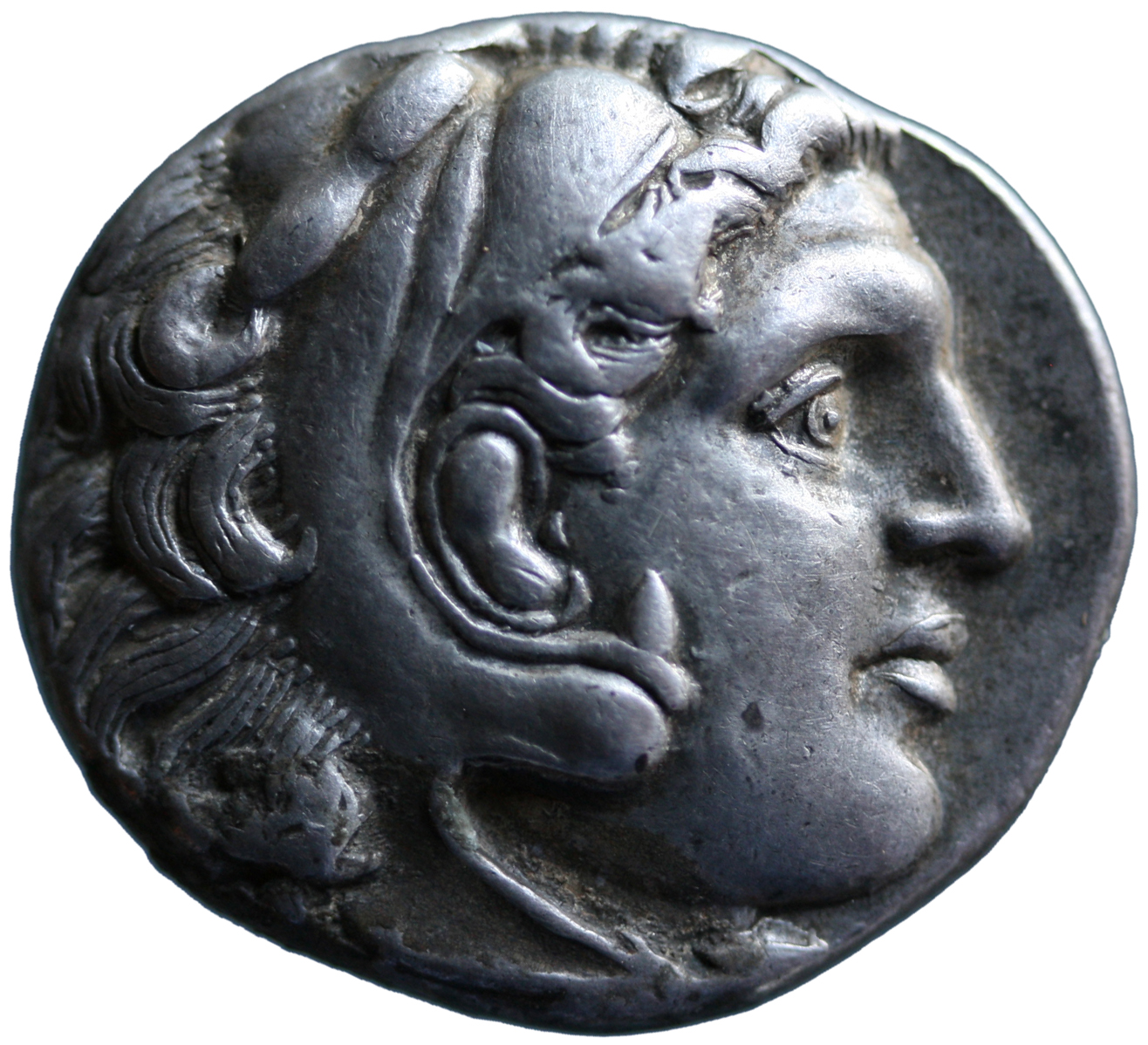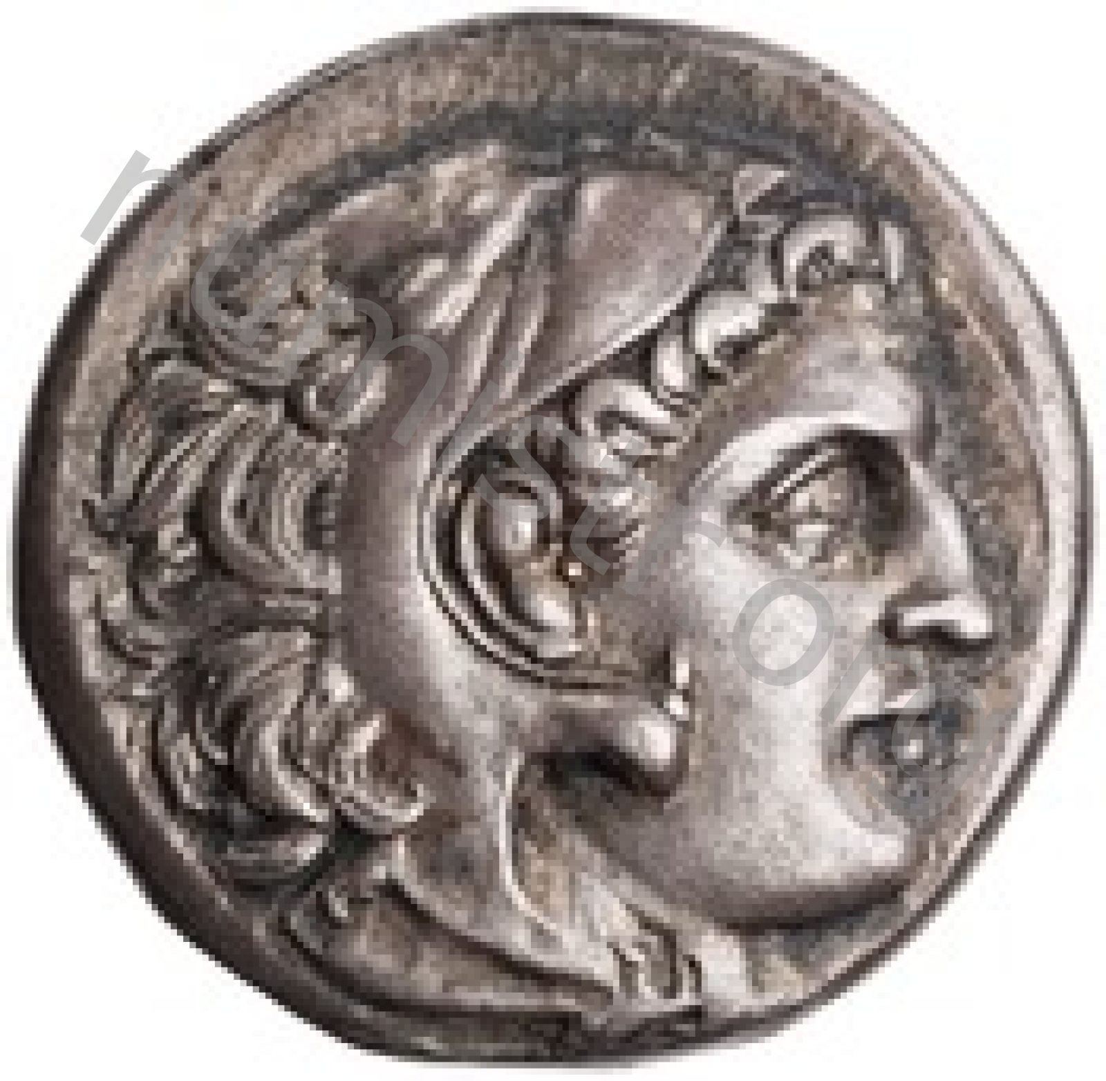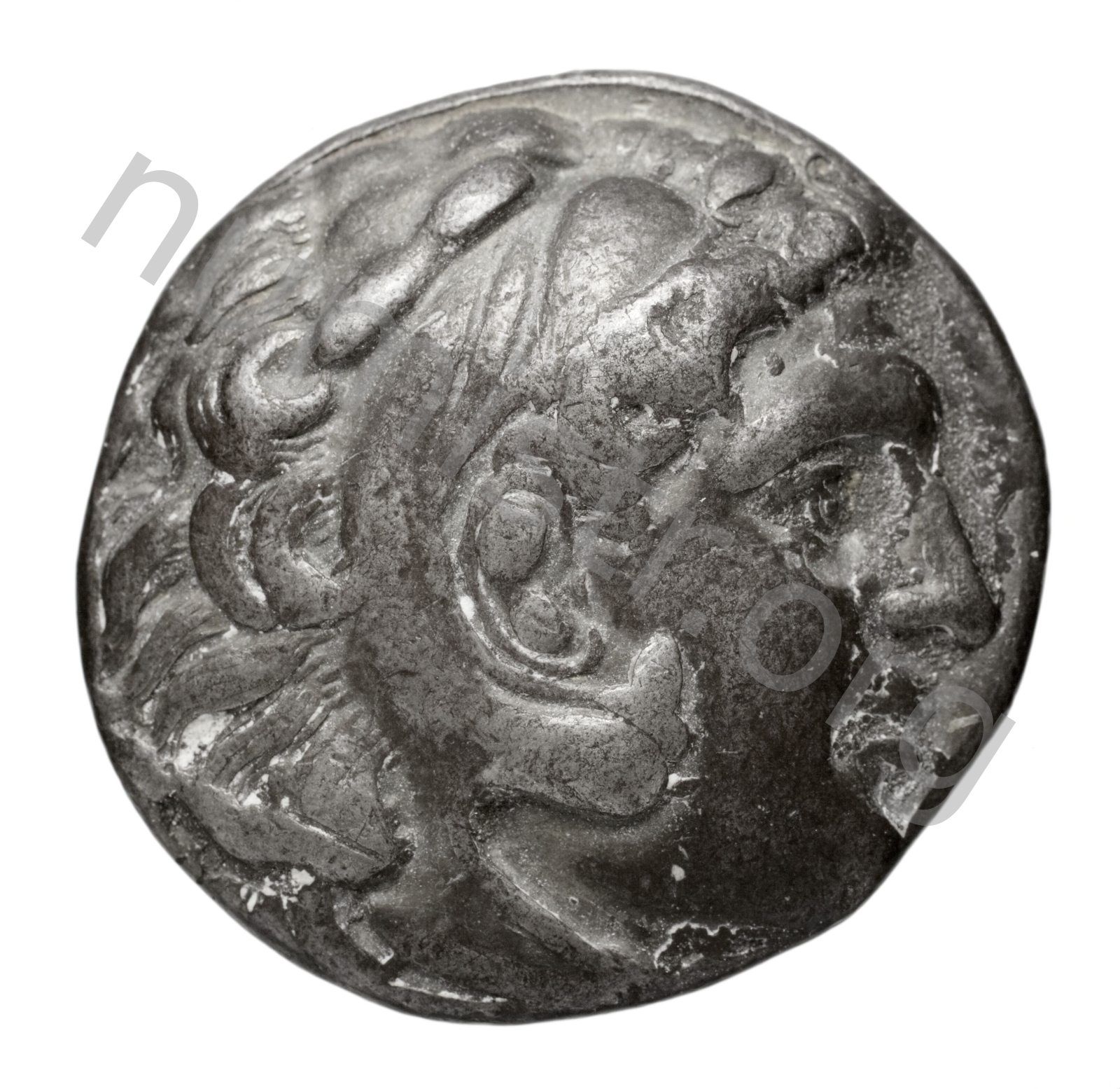 Head of beardless Heracles right wearing lion skin headdress -[en]