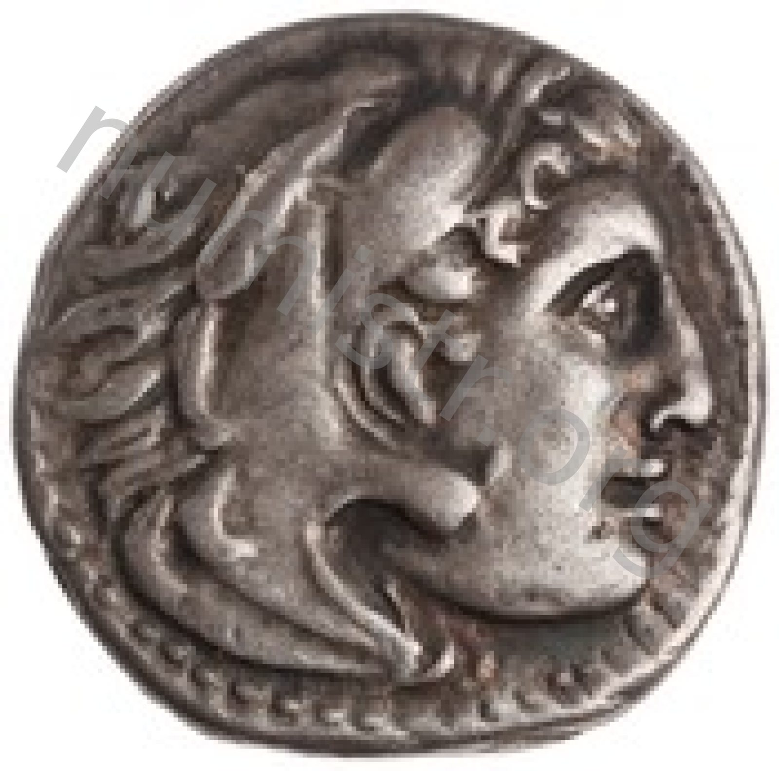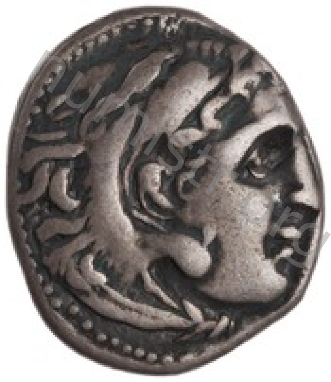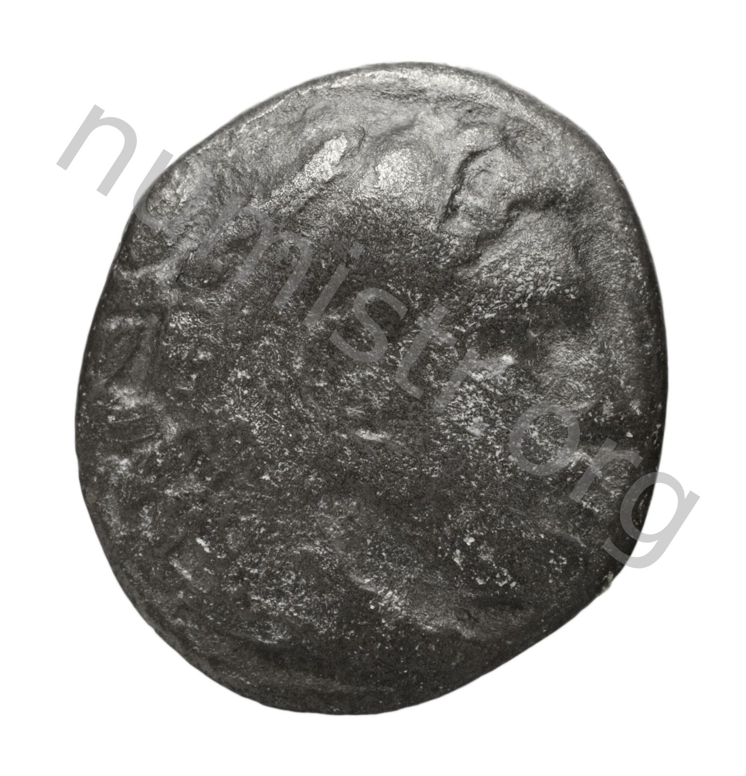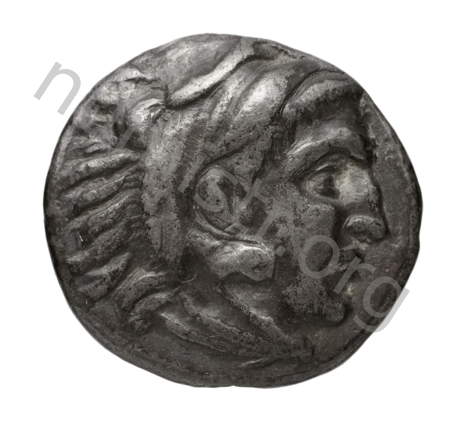 Head of beardless Heracles right wearing lion skin headdress -[en]