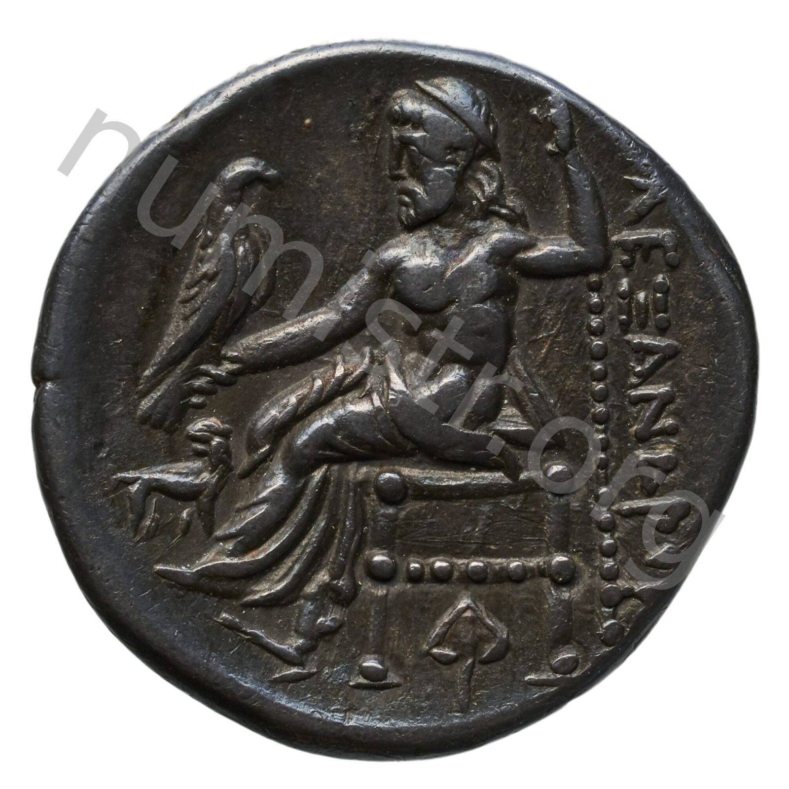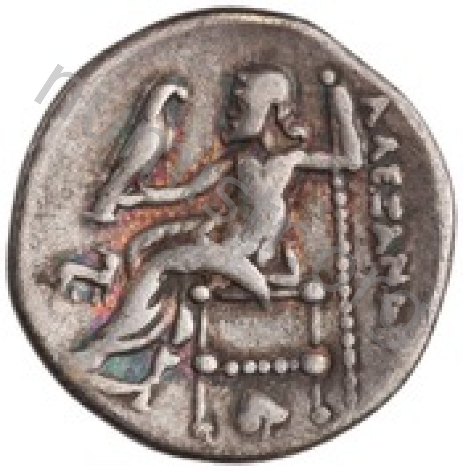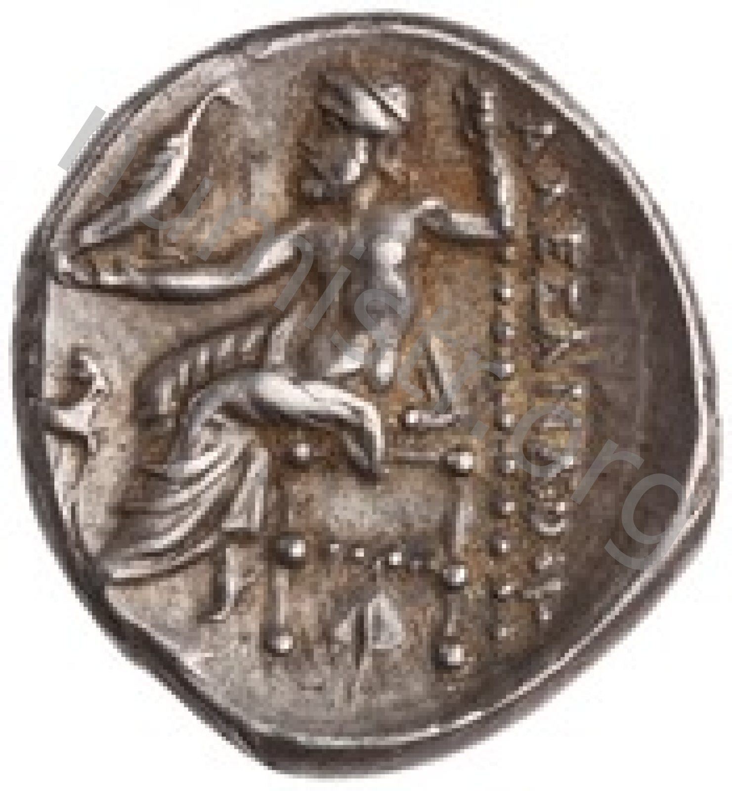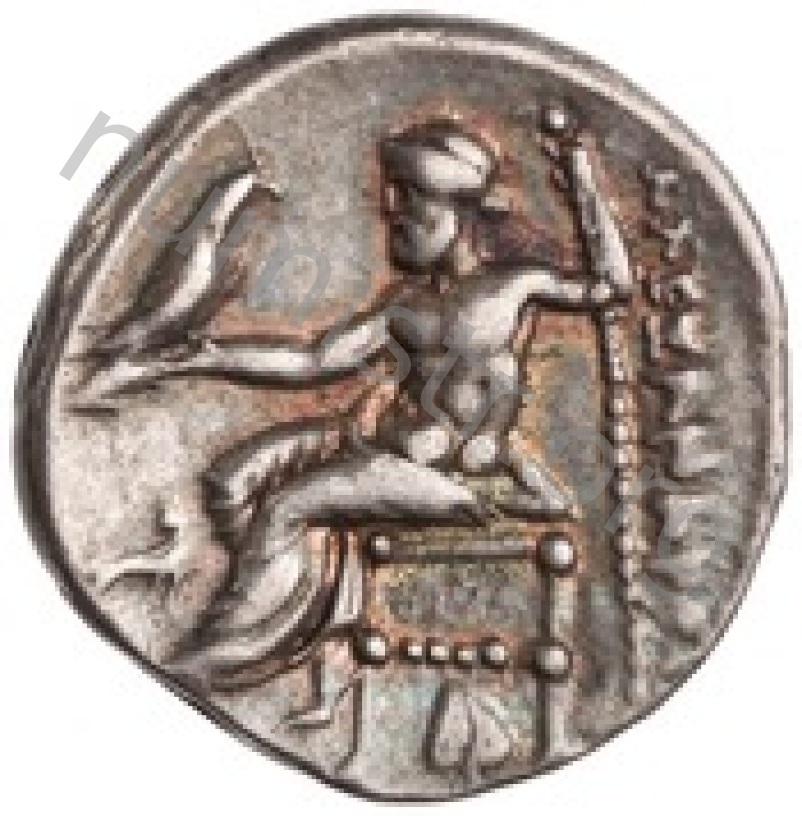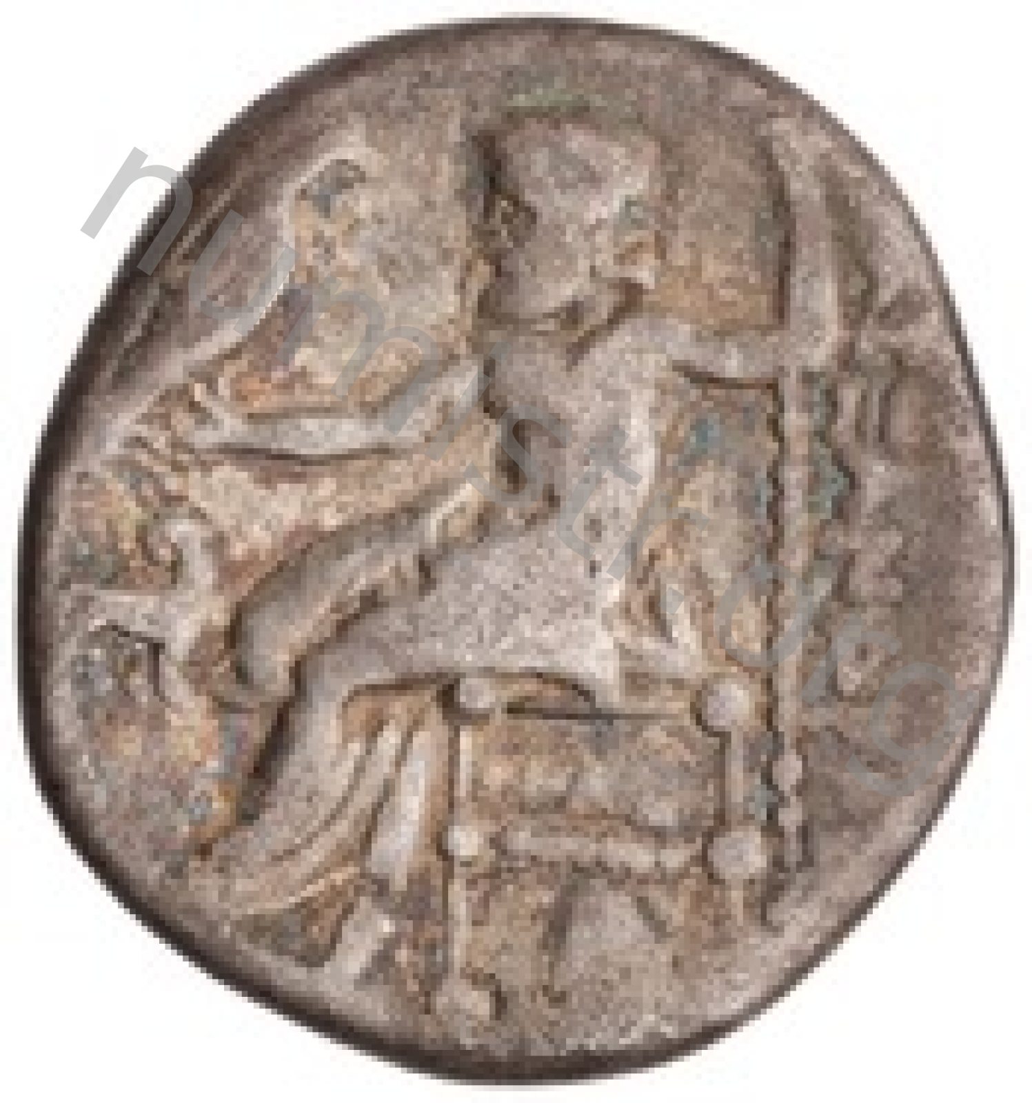 Zeus tabure-tahtta oturuyor sol elinde kartal sağ elinde asa var