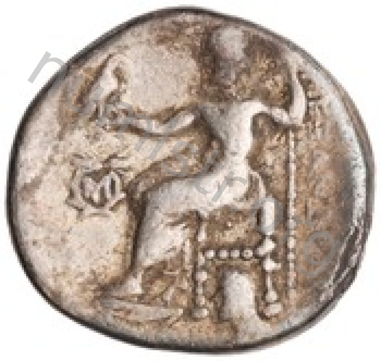 Zeus seated on stool-throne left eagle on outstretched right hand sceptre in left hand -[en]