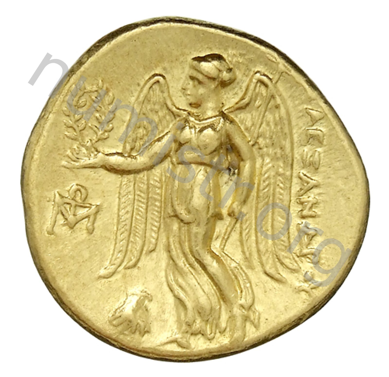 Nike standing left holding wreath in right hand and stylis in her left hand -[en]