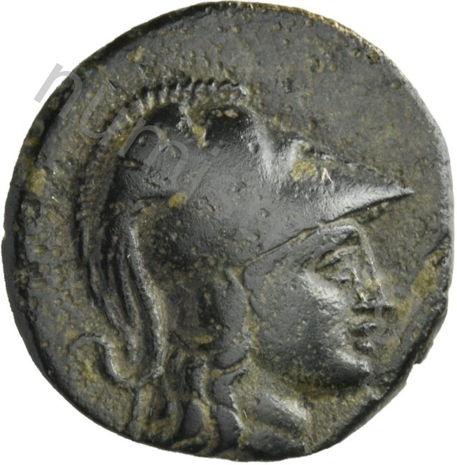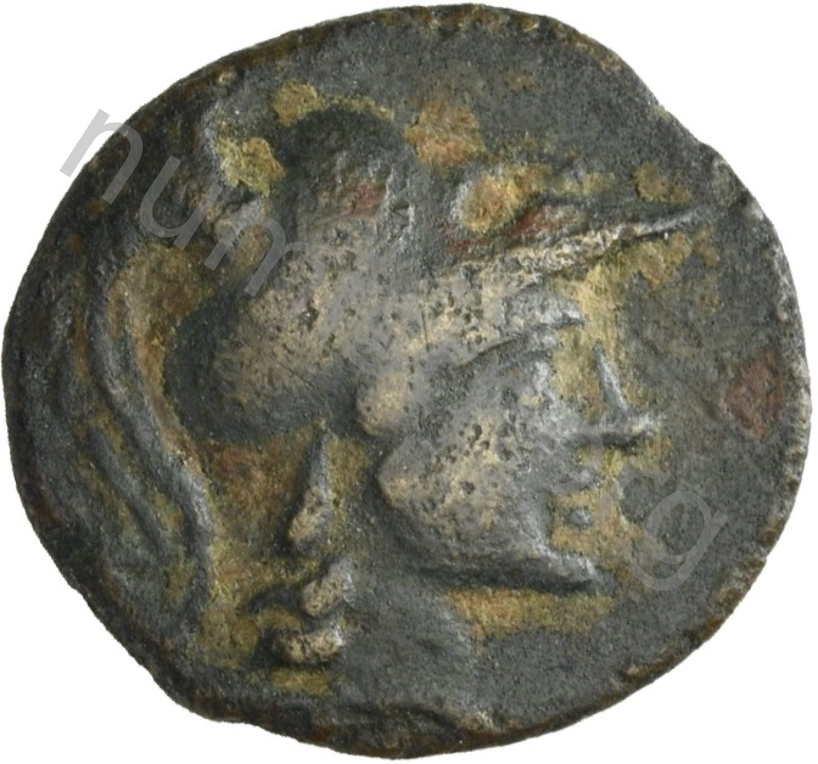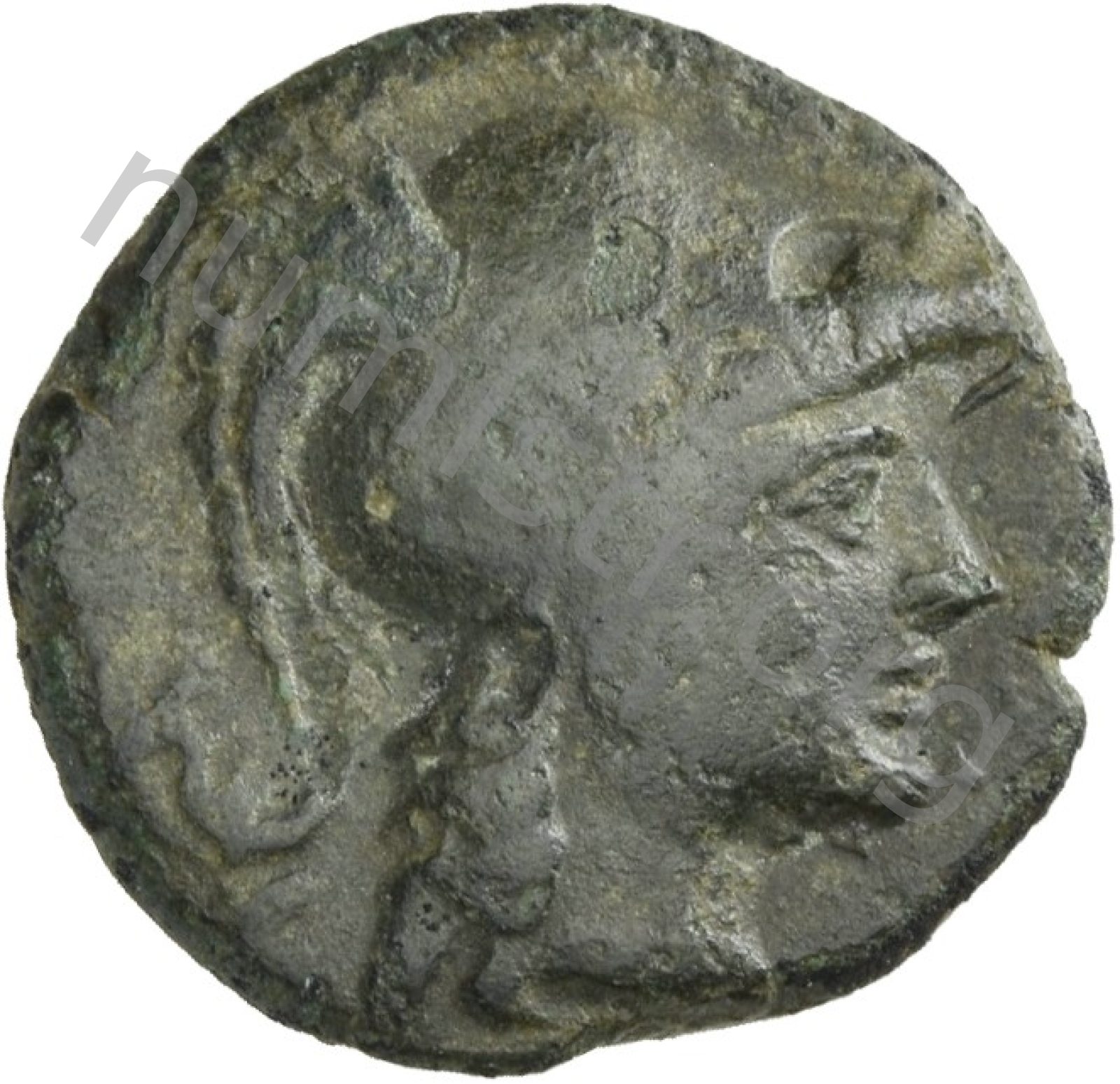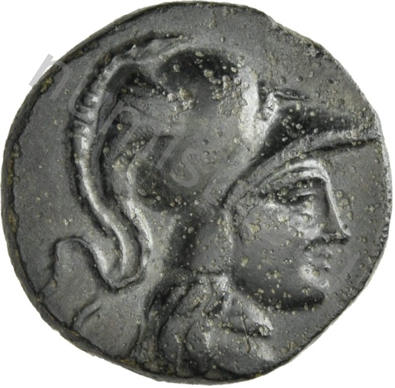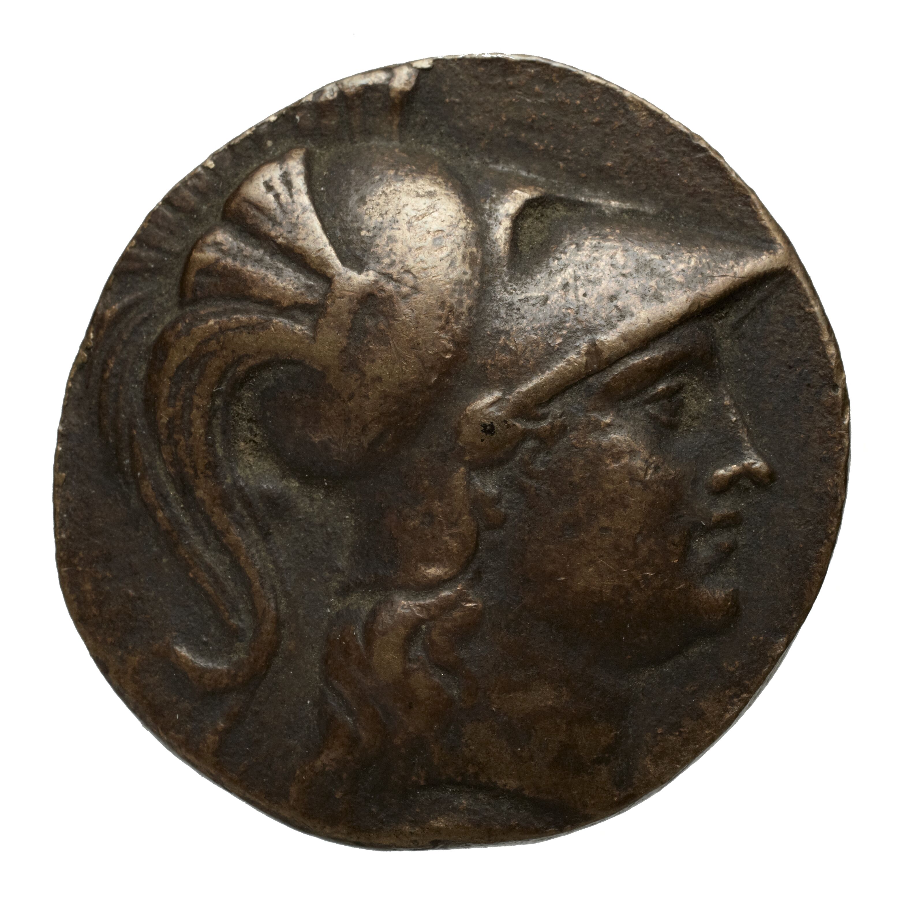 Head of Athena wearing a crested Corinthian helmet -[en]