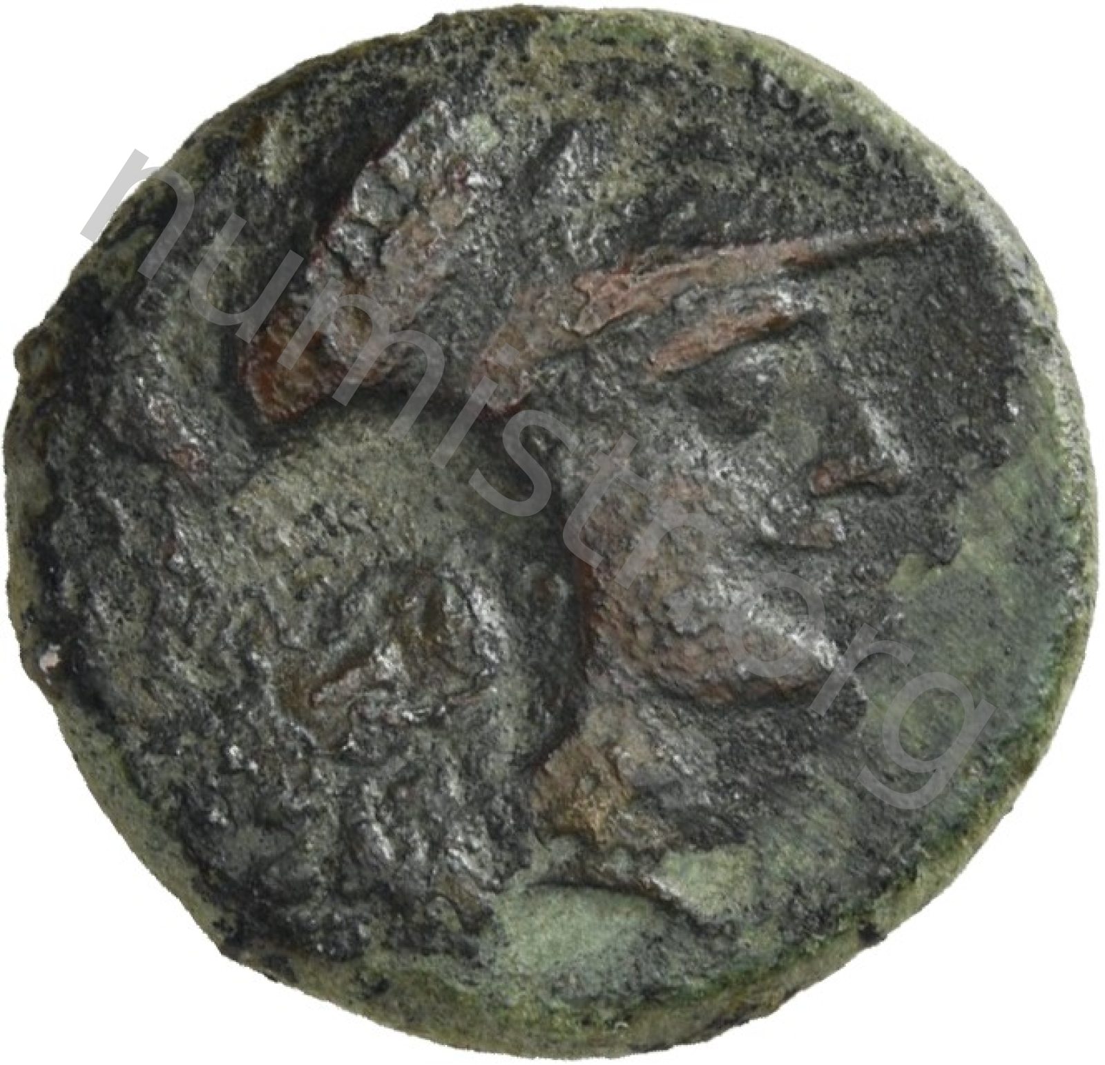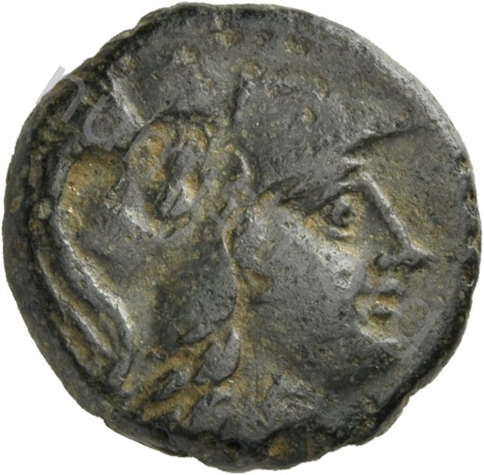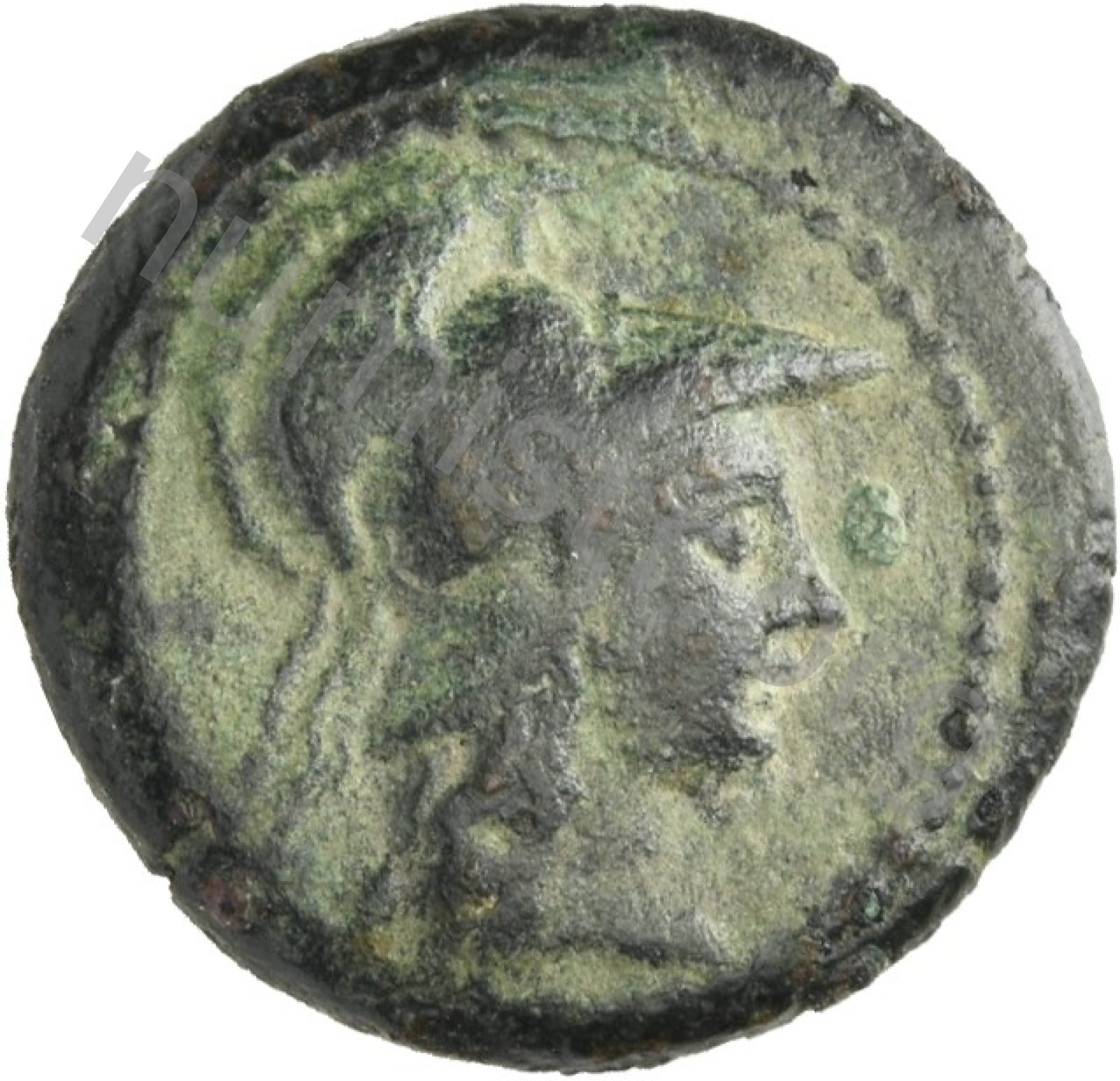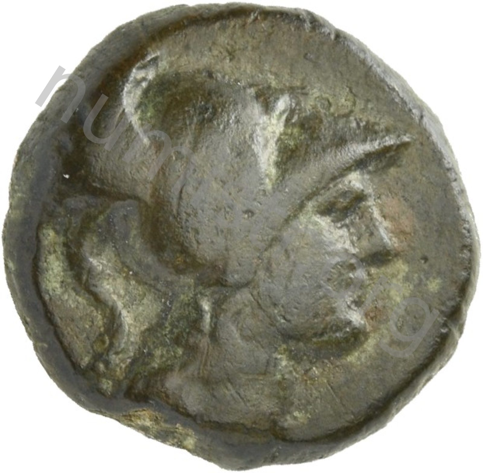 Head of Athena wearing a crested Corinthian helmet -[en]