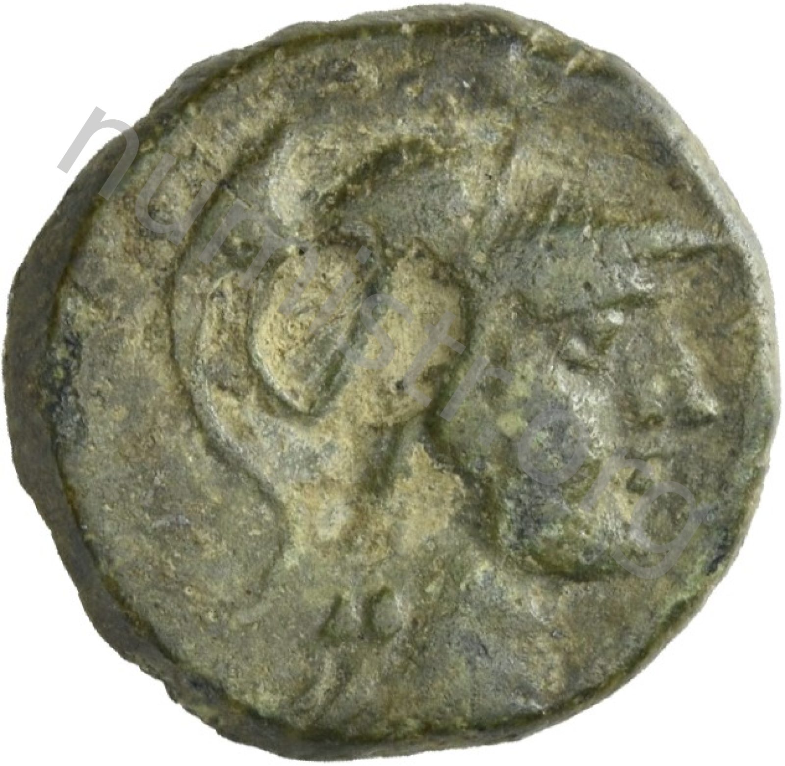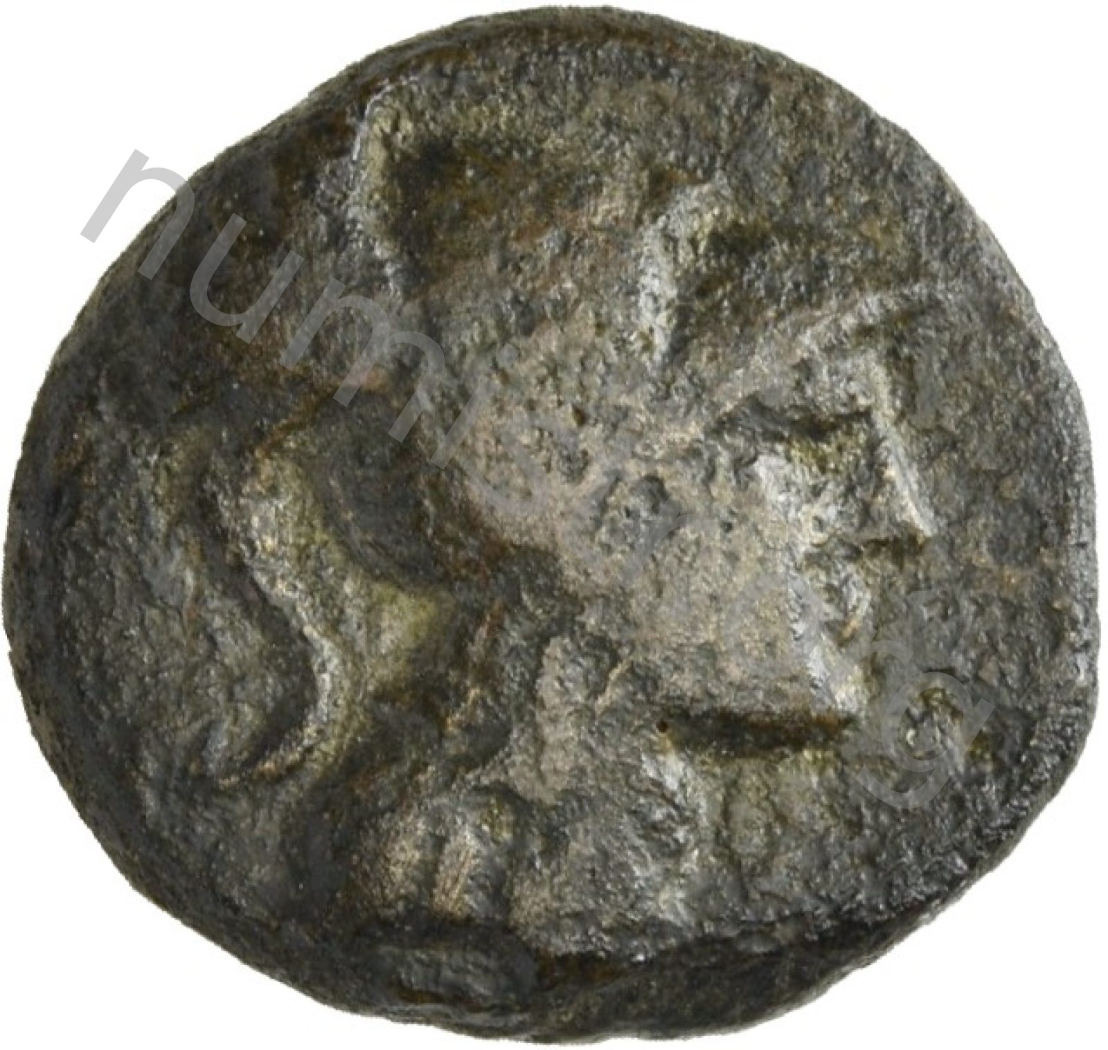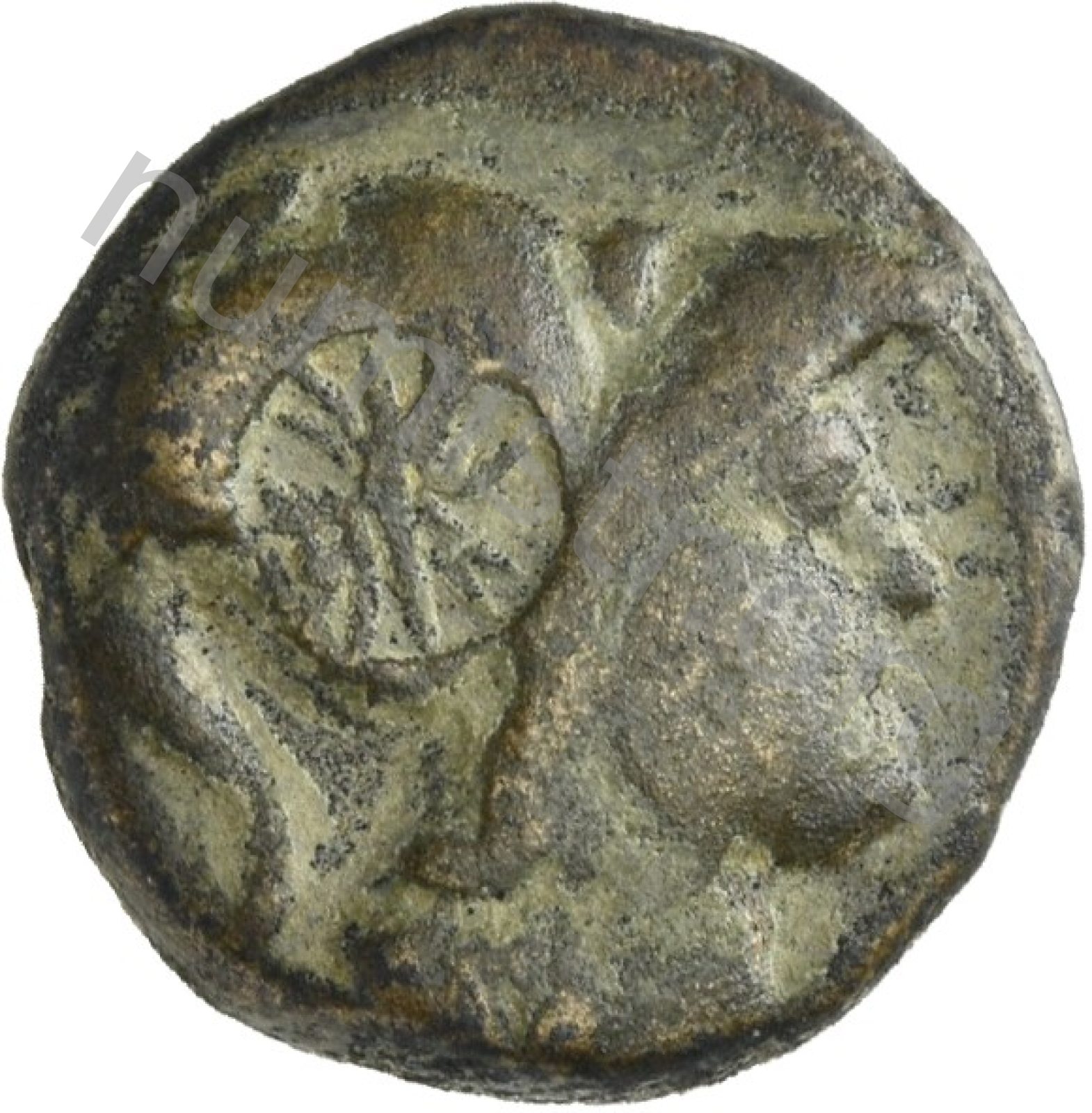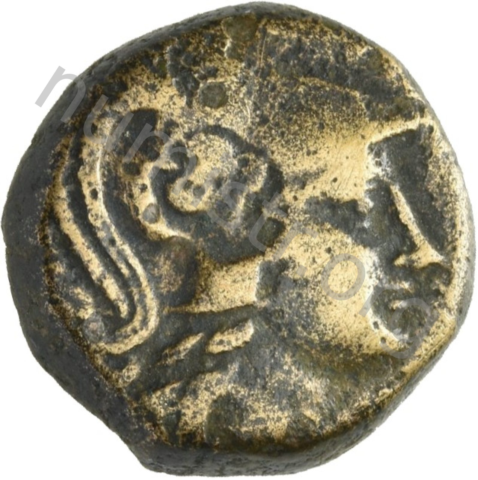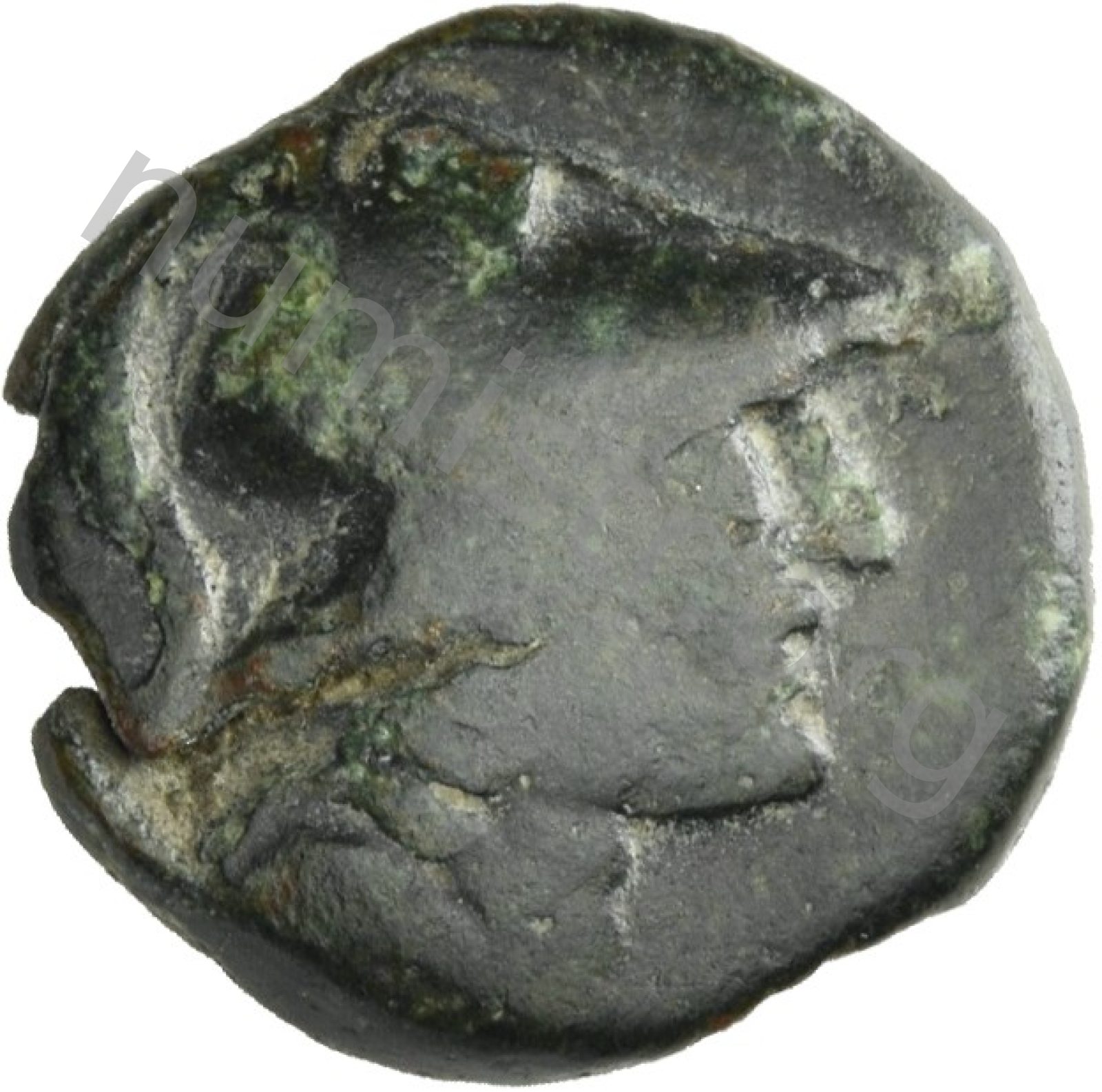 Head of Athena wearing a crested Corinthian helmet -[en]