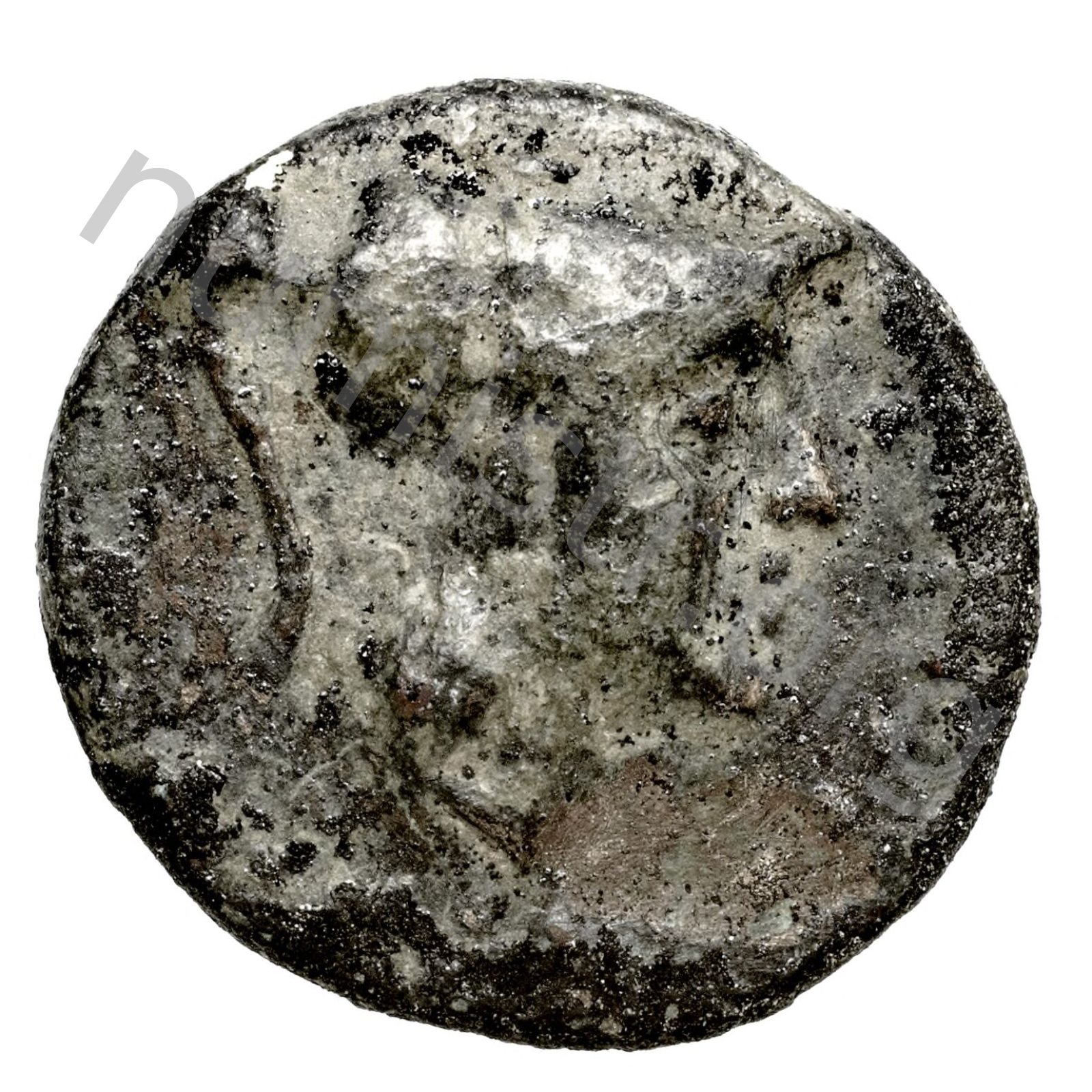 Head of Athena wearing a crested Corinthian helmet -[en]