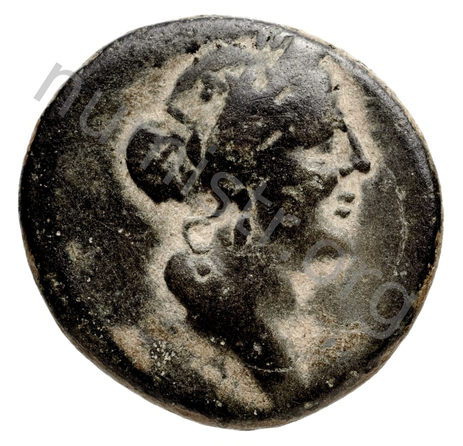 Head of Queen Laodice (?) wearing a laurel wreath and necklace -[en]