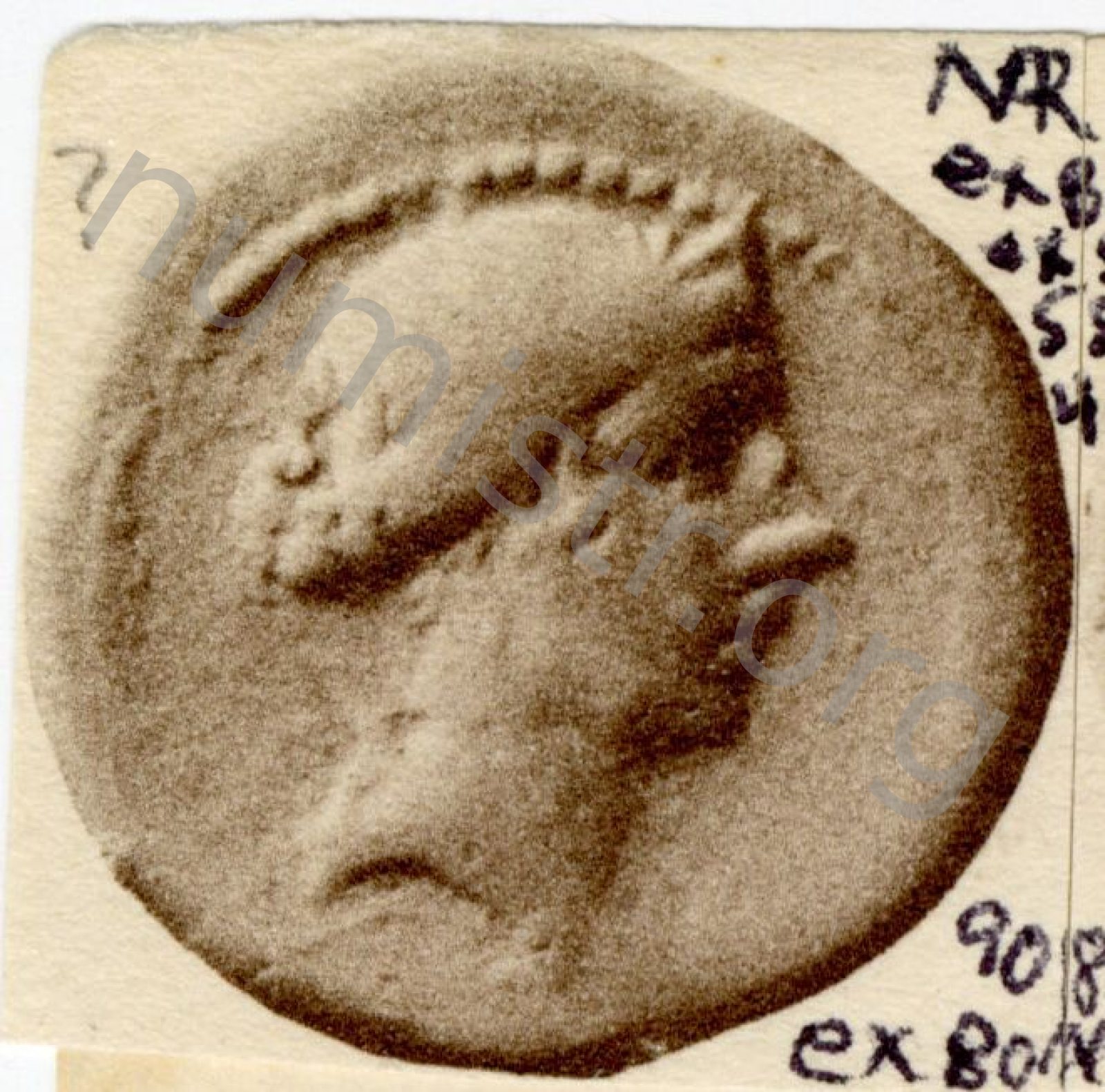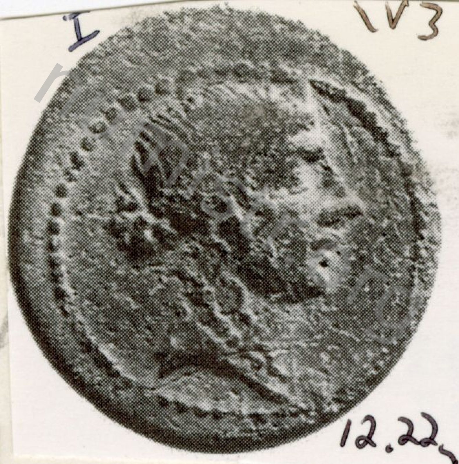 Head of Venus right wearing diadem. Border of dots. -[en]