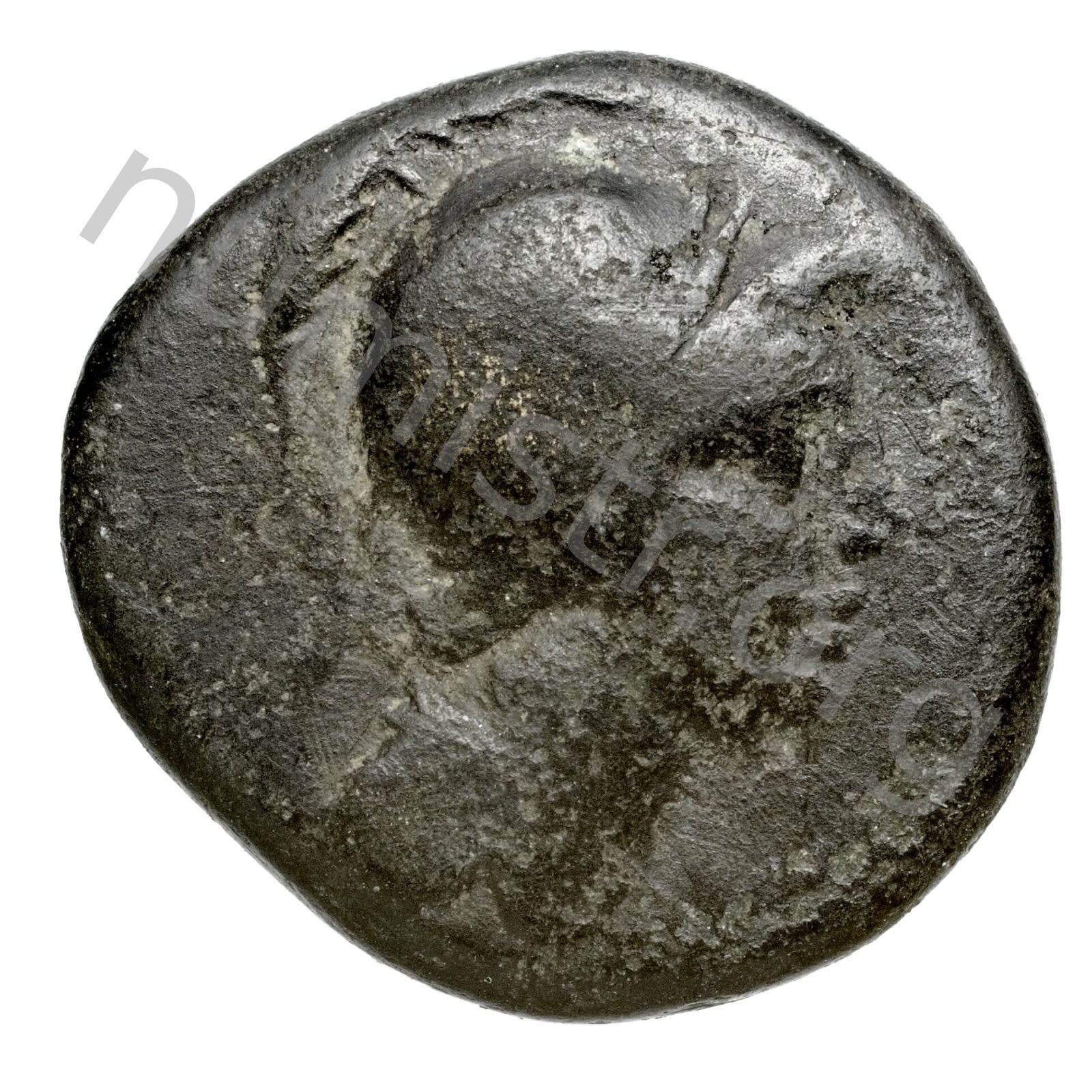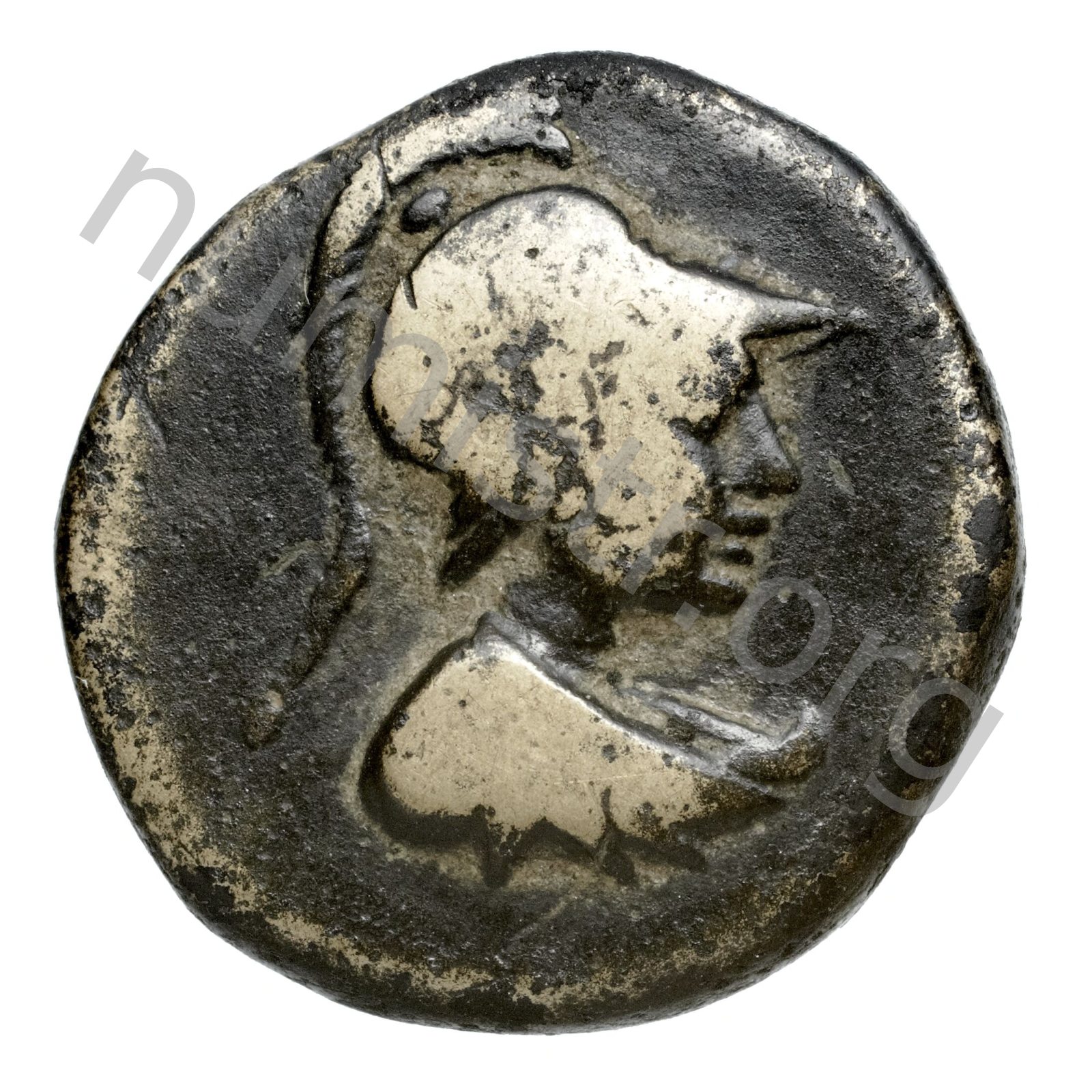 Bust of Athena draped wearing a crested Corinthian helmet -[en]