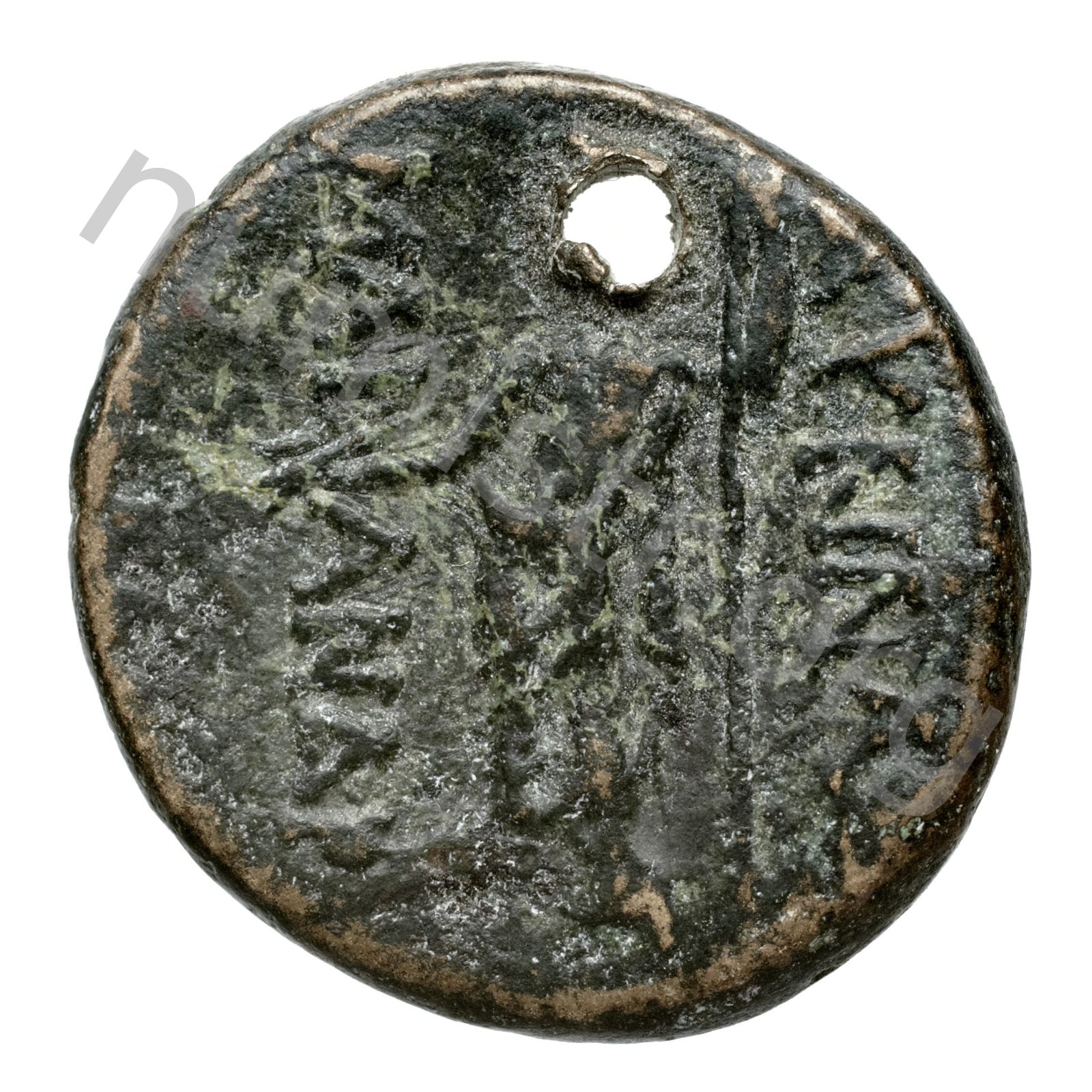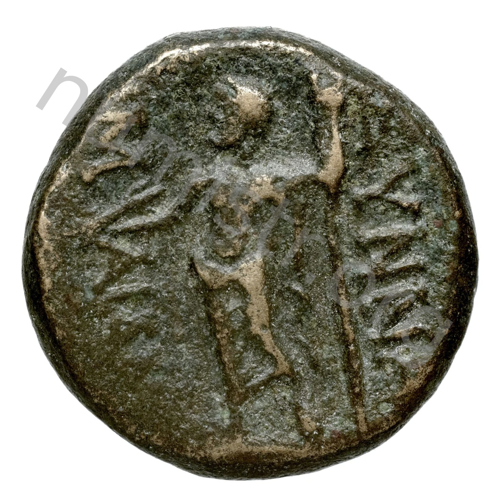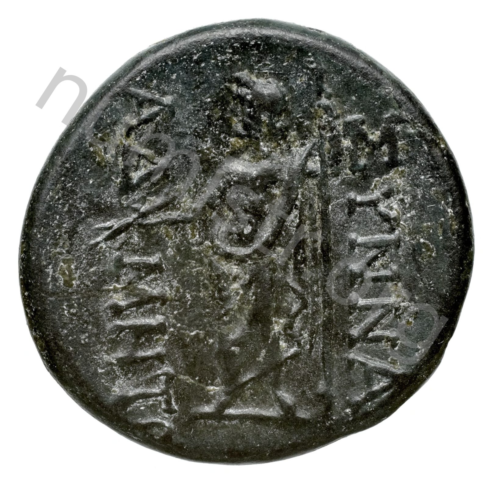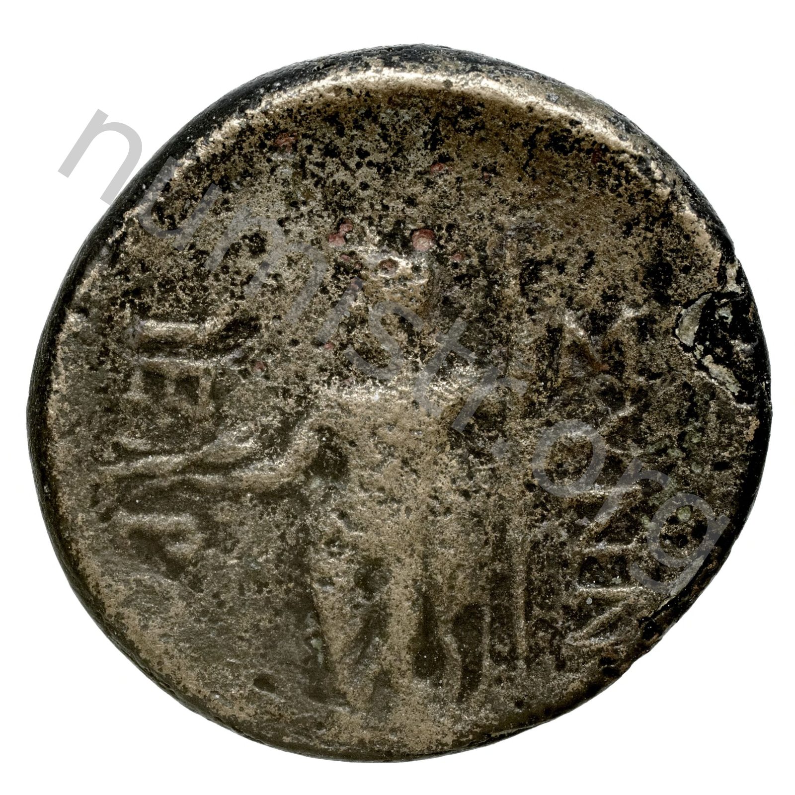 Himation (pelerin) giymiş elinde şimşek tutan ve bir asaya yaslanan Zeus
