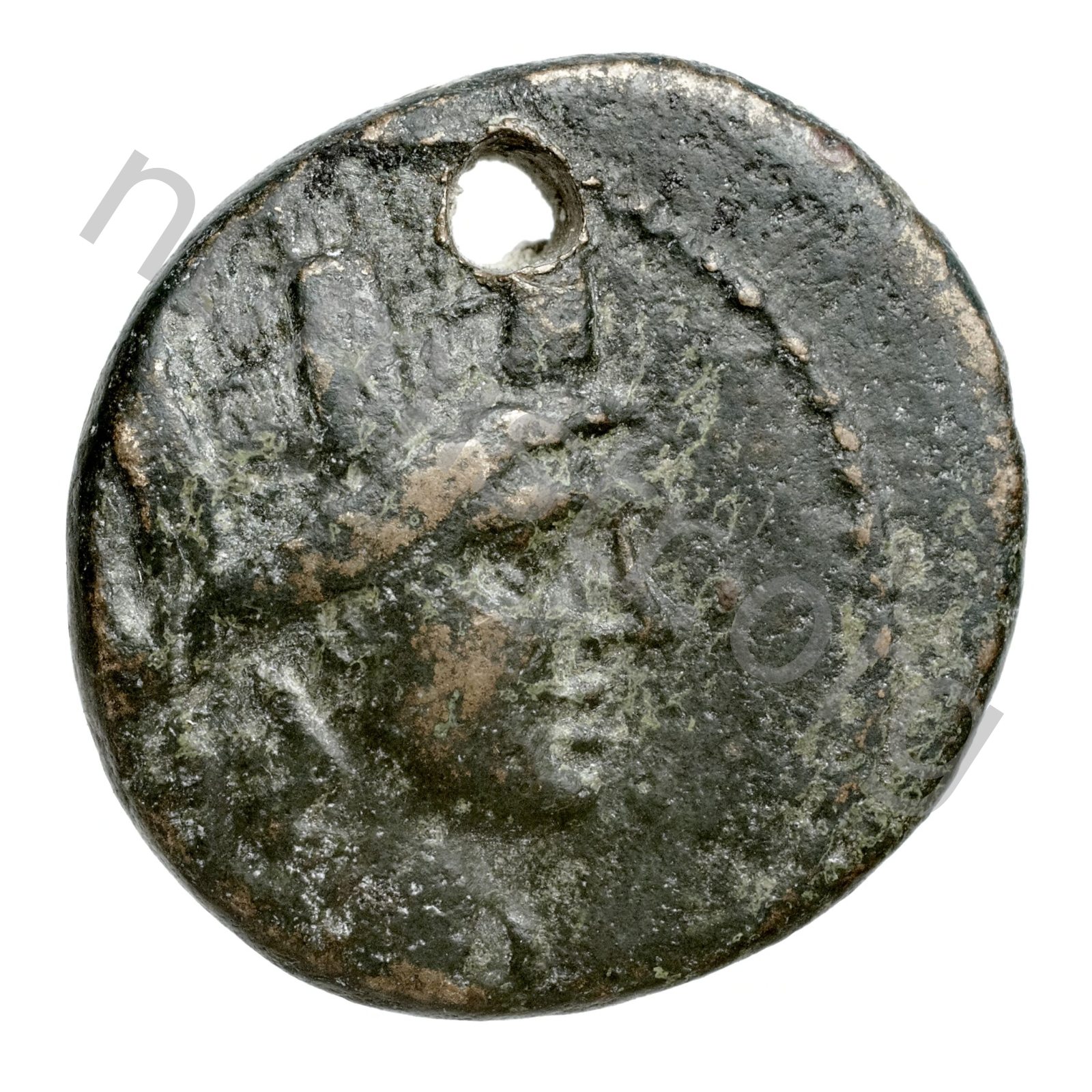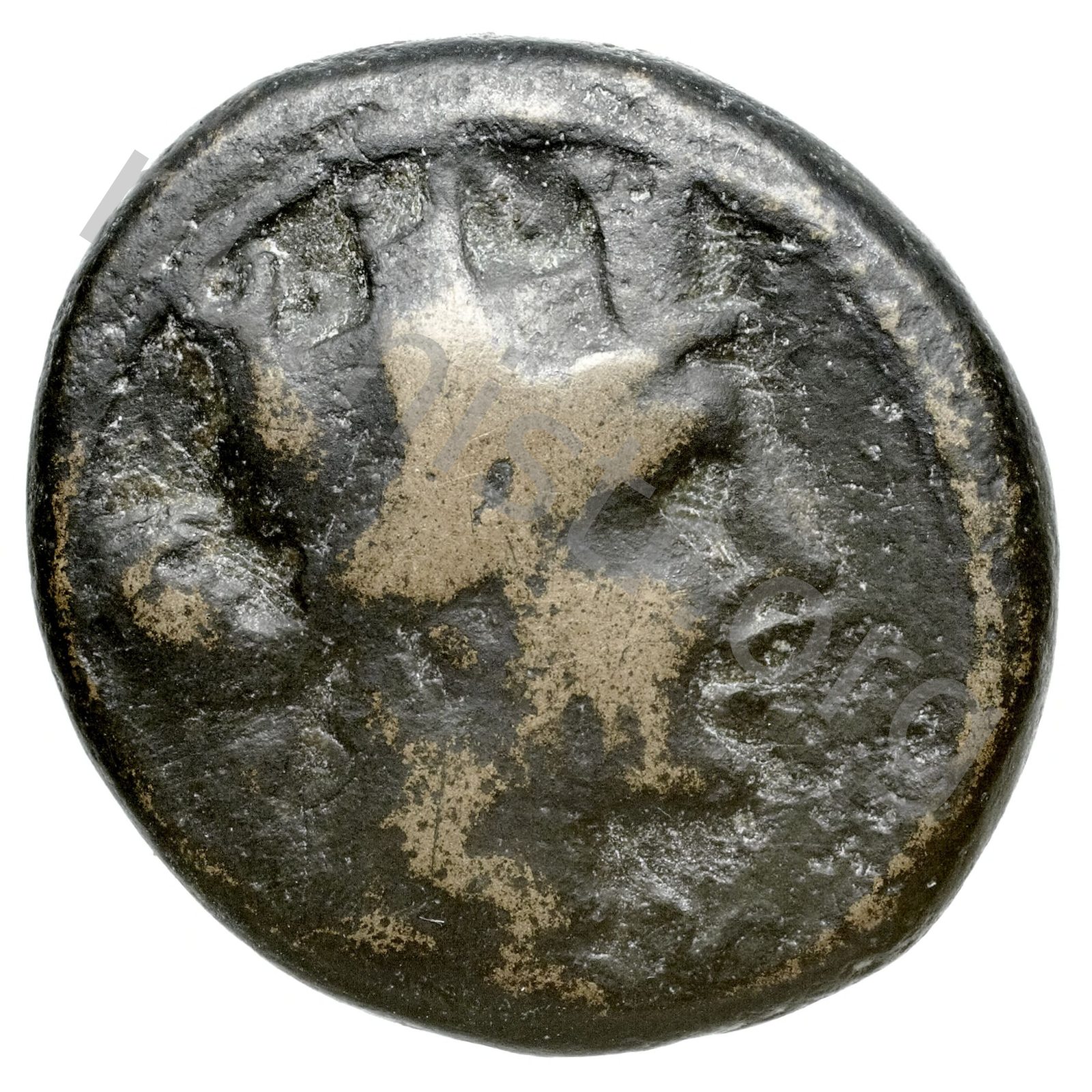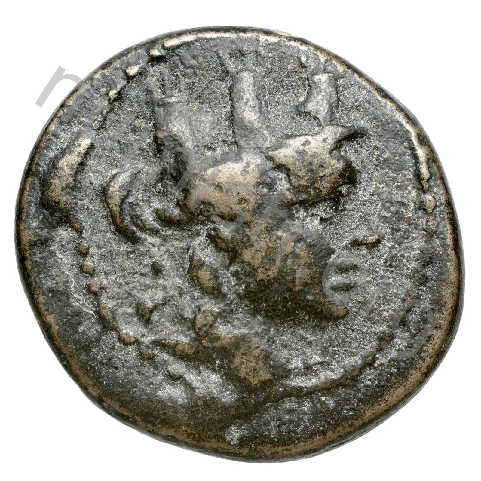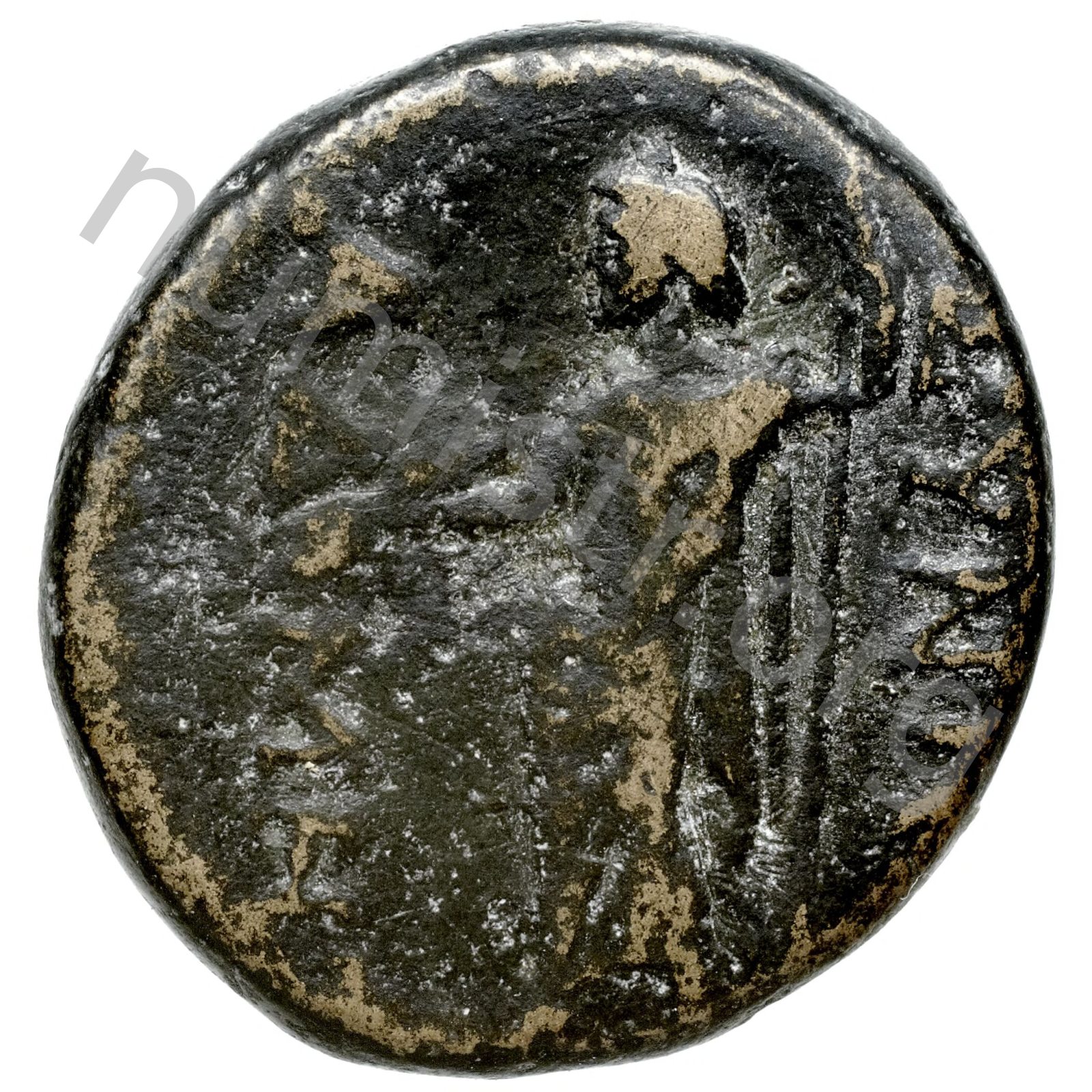 Himation (pelerin) giymiş elinde şimşek tutan ve bir asaya yaslanan Zeus