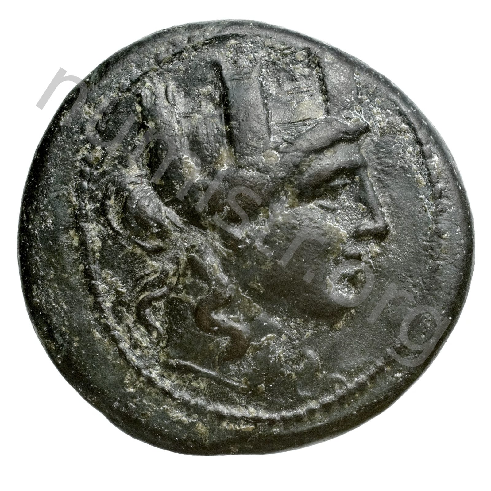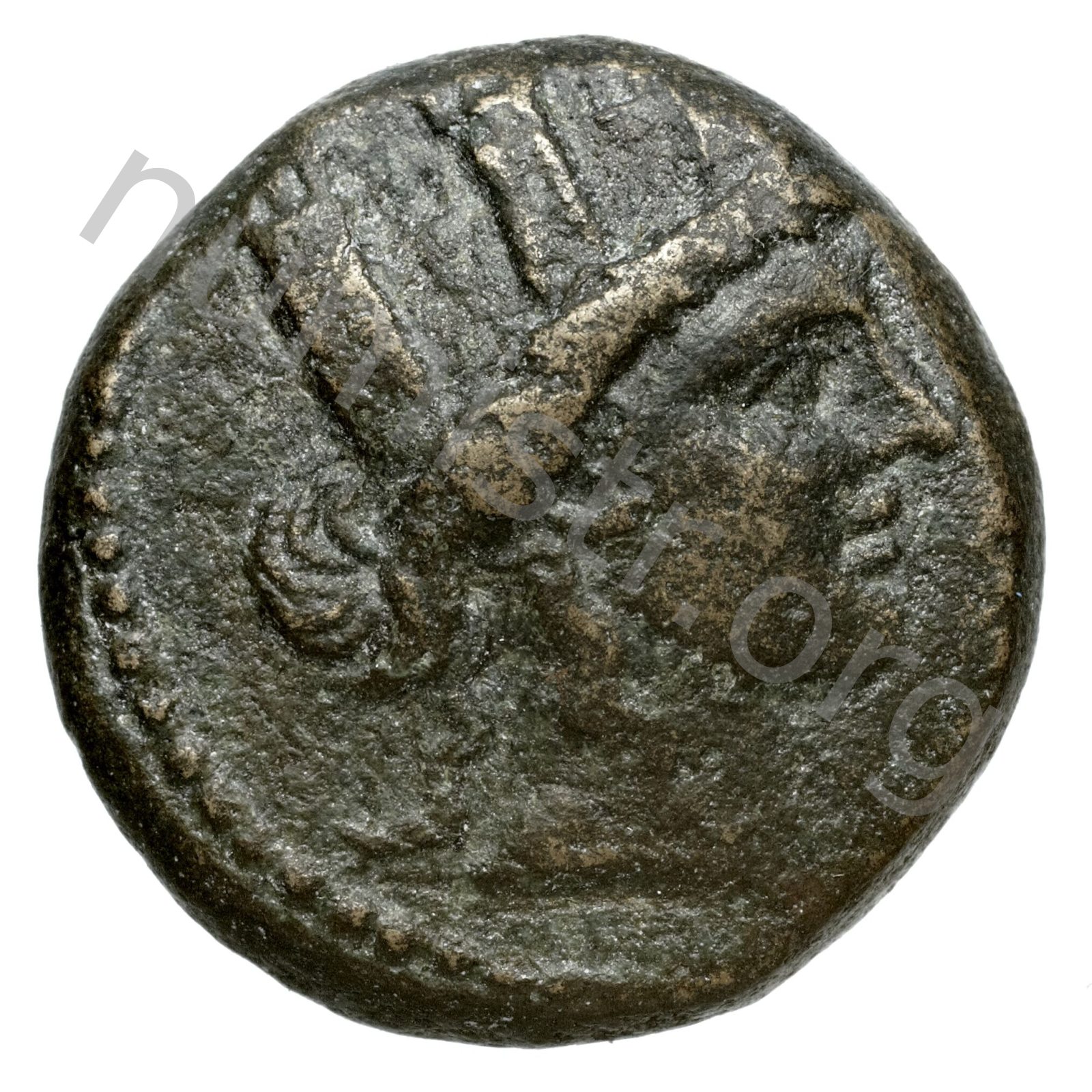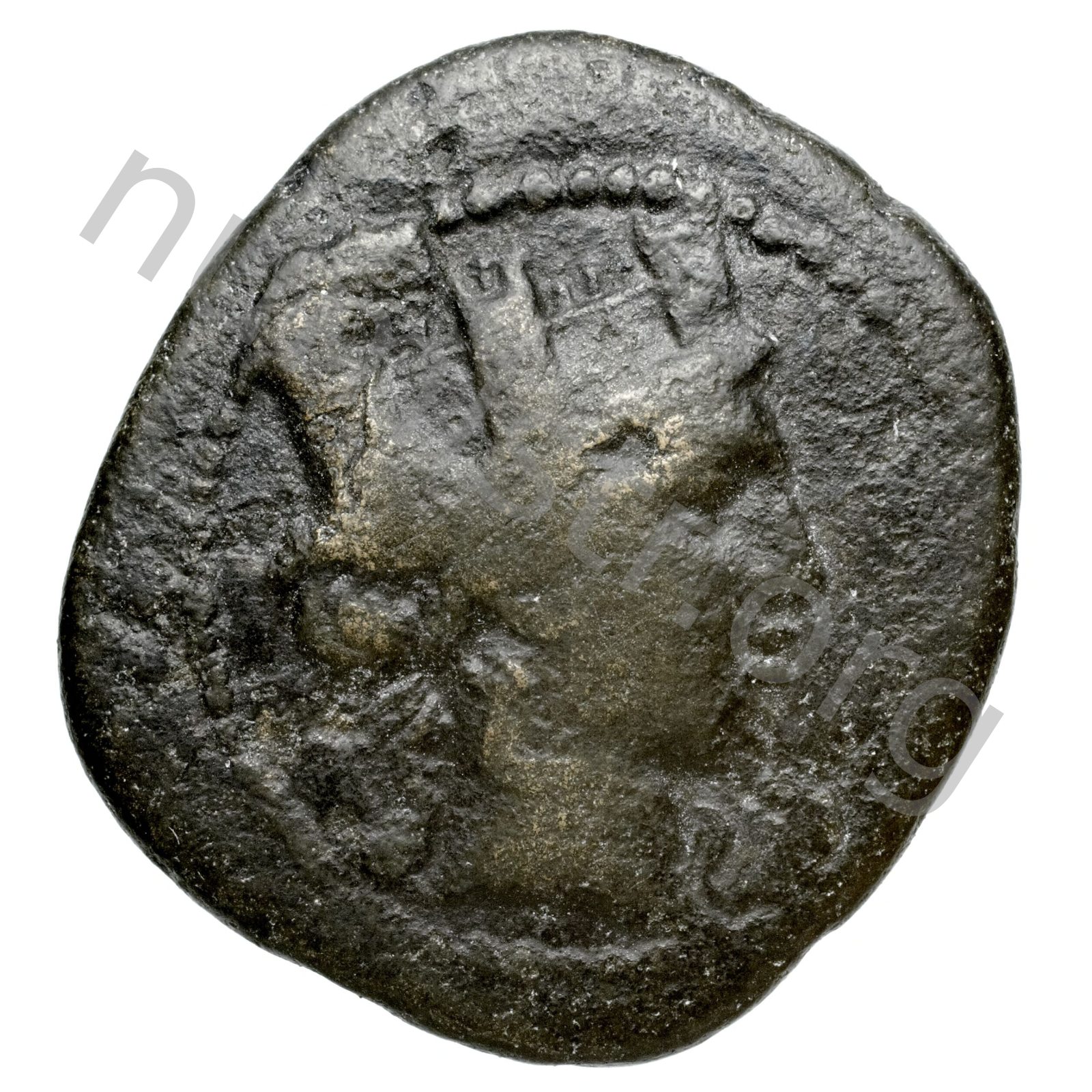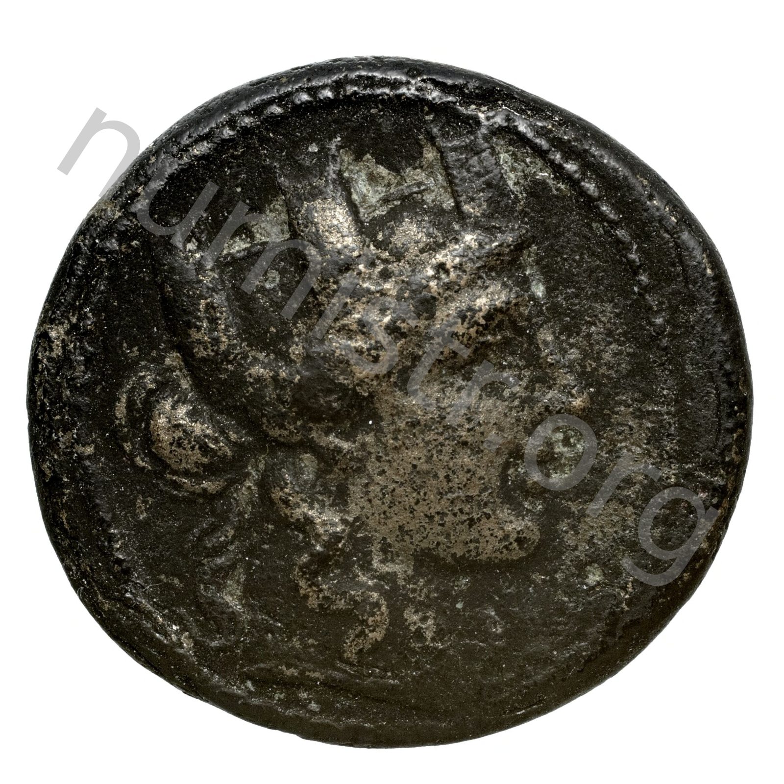 Himation (pelerin) giymiş elinde şimşek tutan ve bir asaya yaslanan Zeus