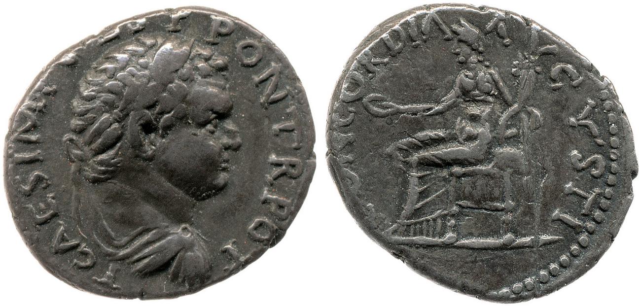 Concordia sol tarafta oturmuş patera ve bereket boynuzu tutuyor