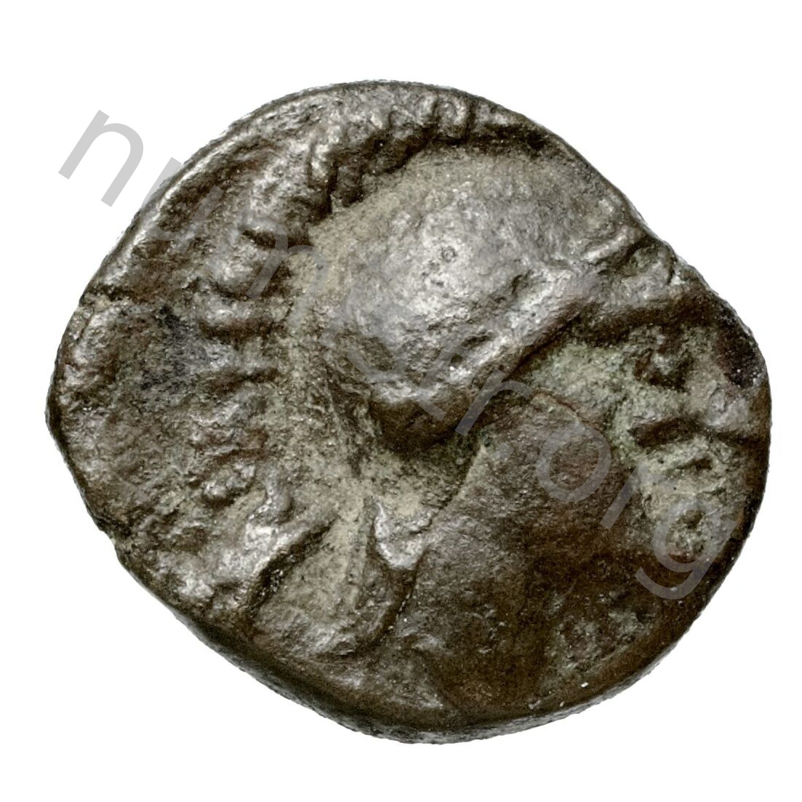 Head of Heracles three-quarters facing wearing a laurel wreath -[en]