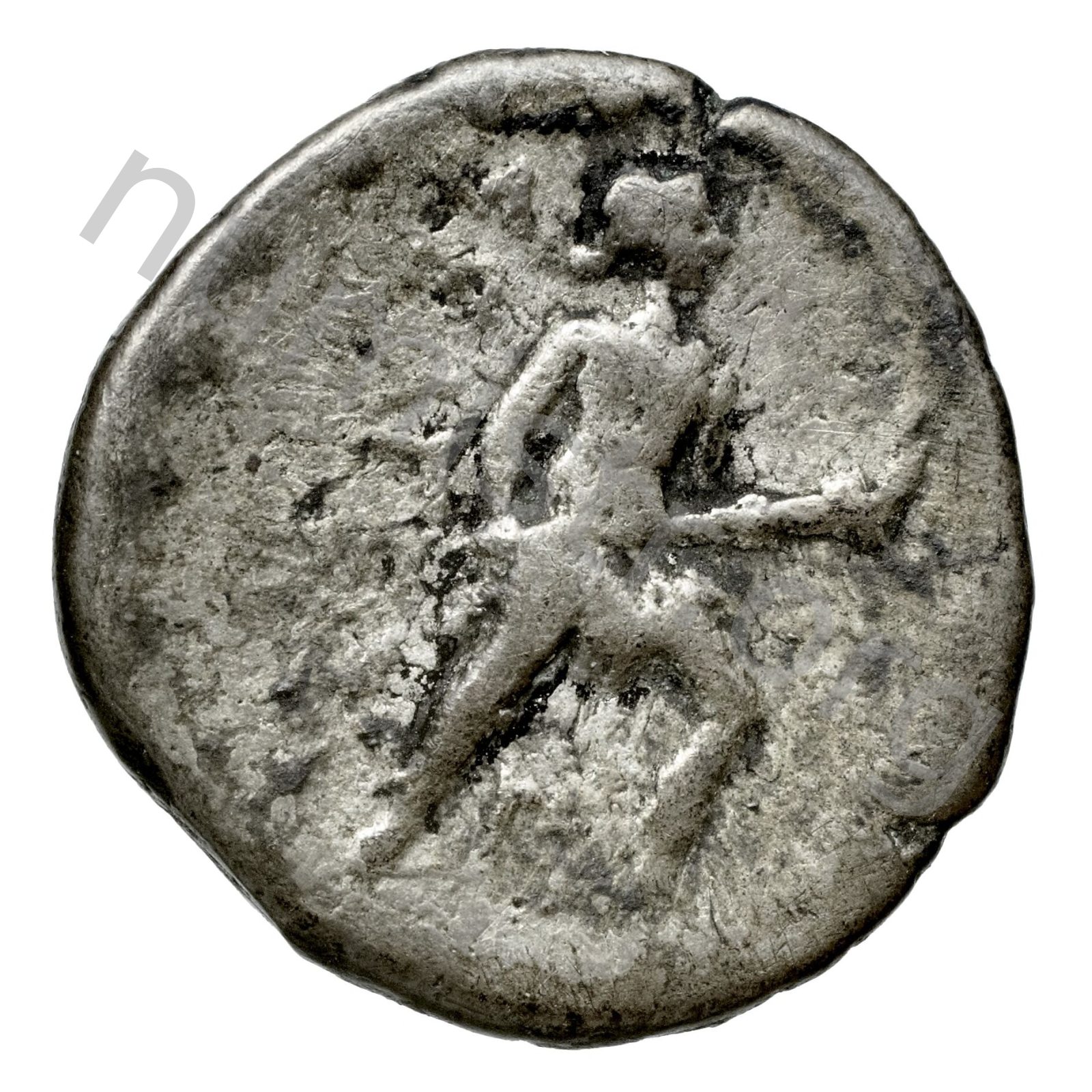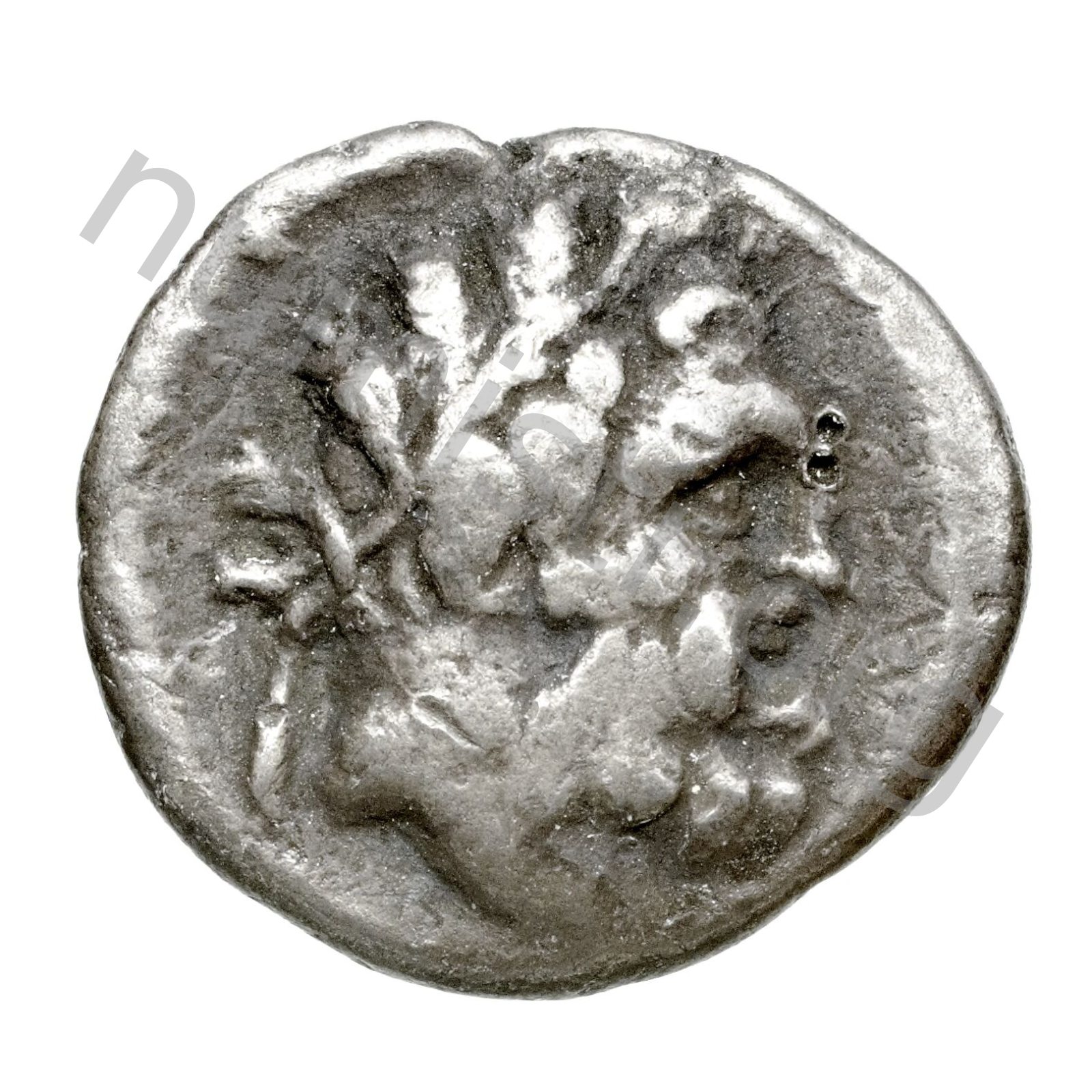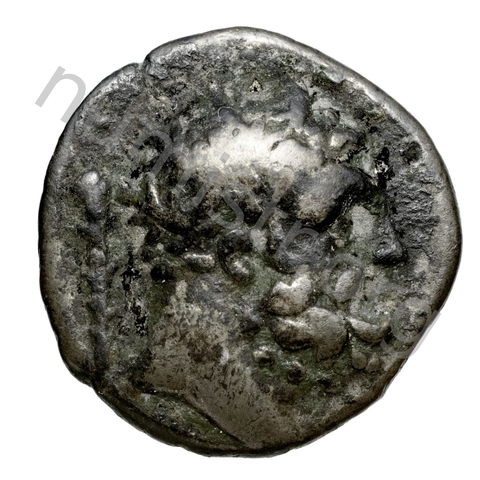 Çelenk takan Herakles'in başı; sahada bir sopa