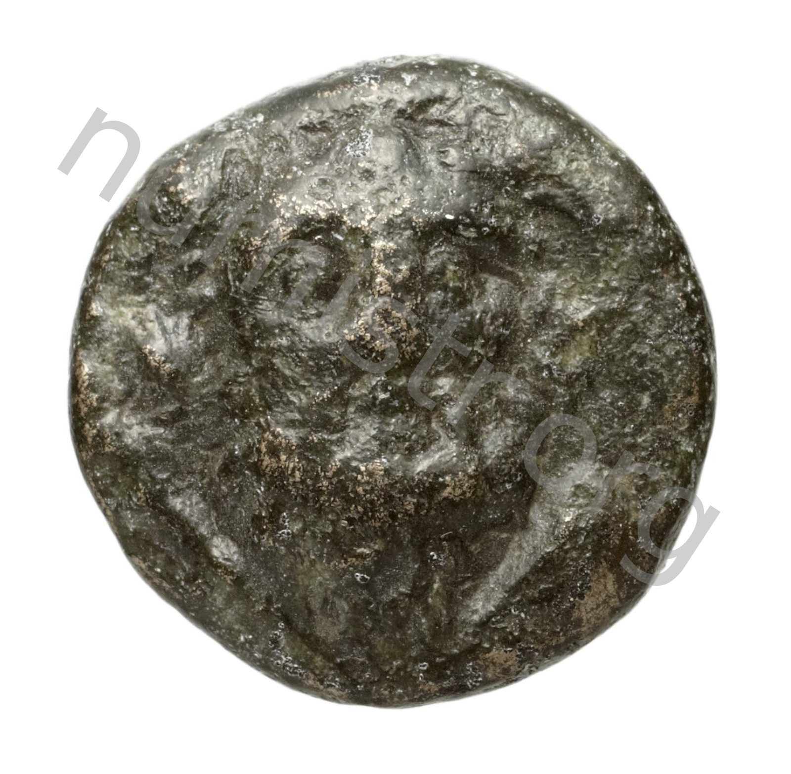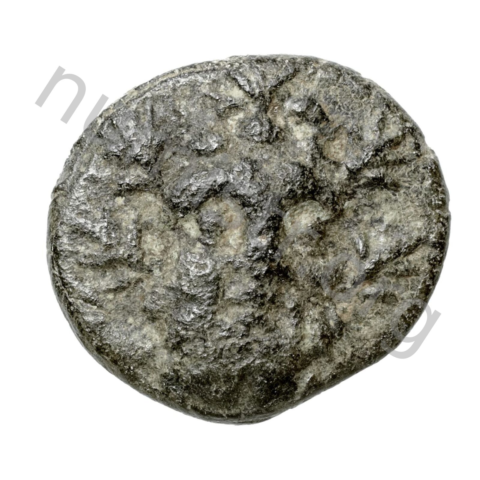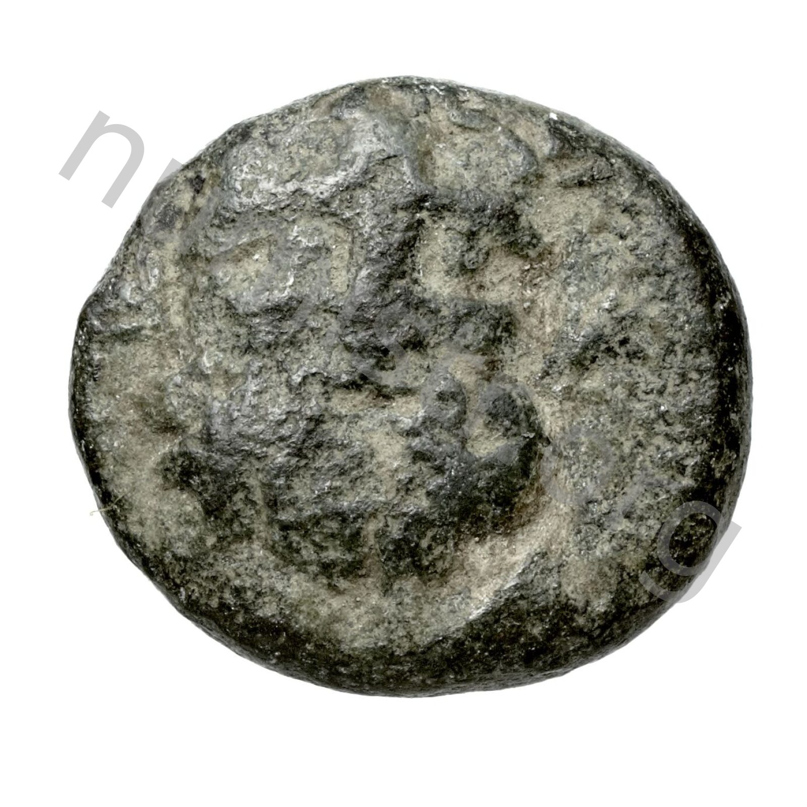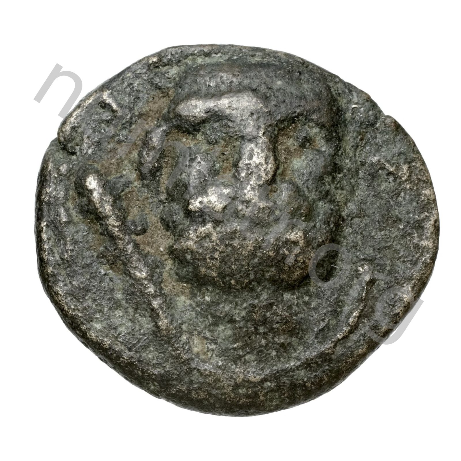 Head of Heracles facing wearing a laurel wreath; in the field a club -[en]