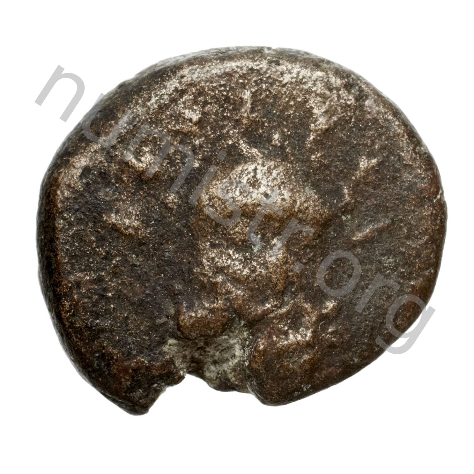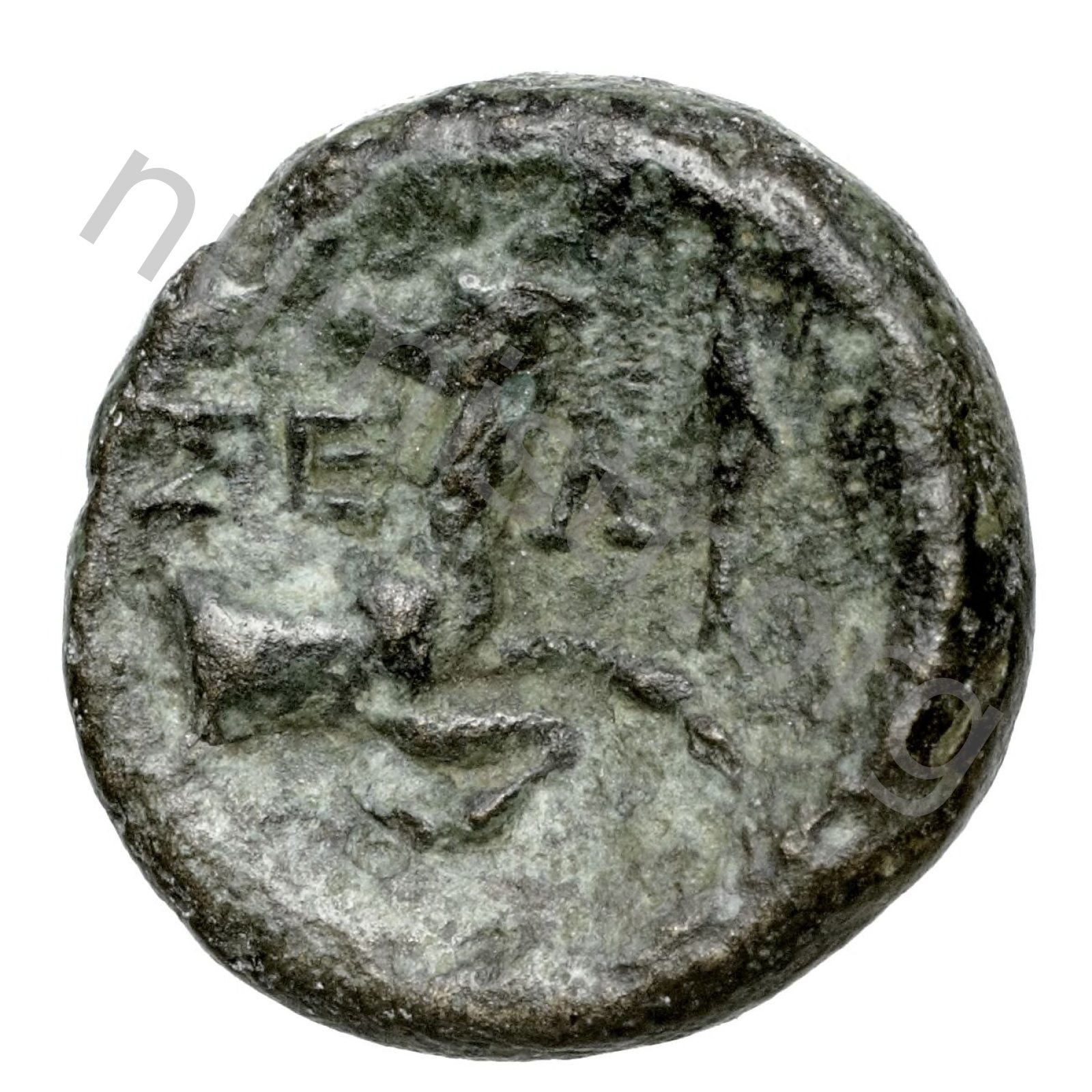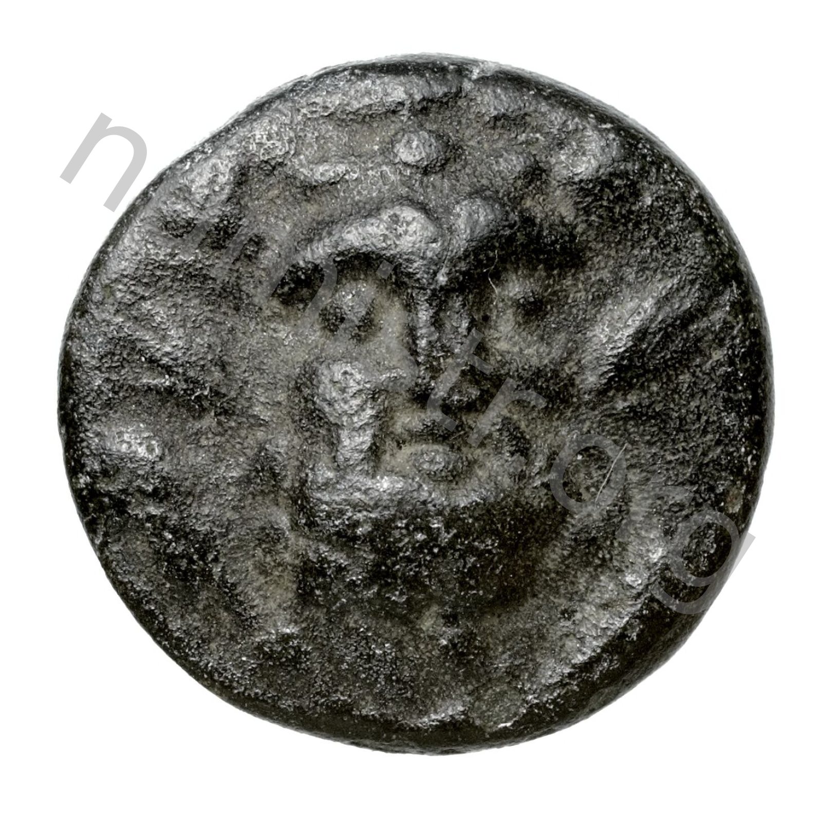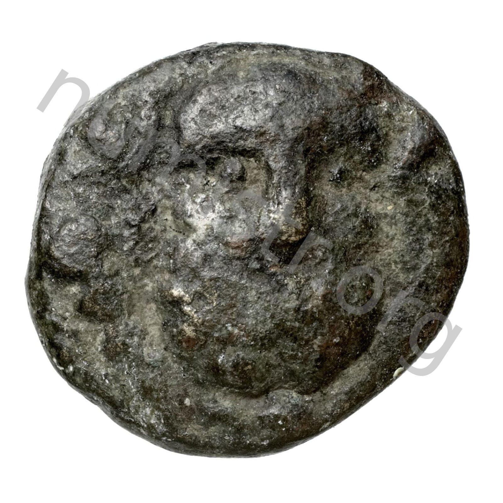 Head of Heracles facing wearing a laurel wreath; in the field a club -[en]