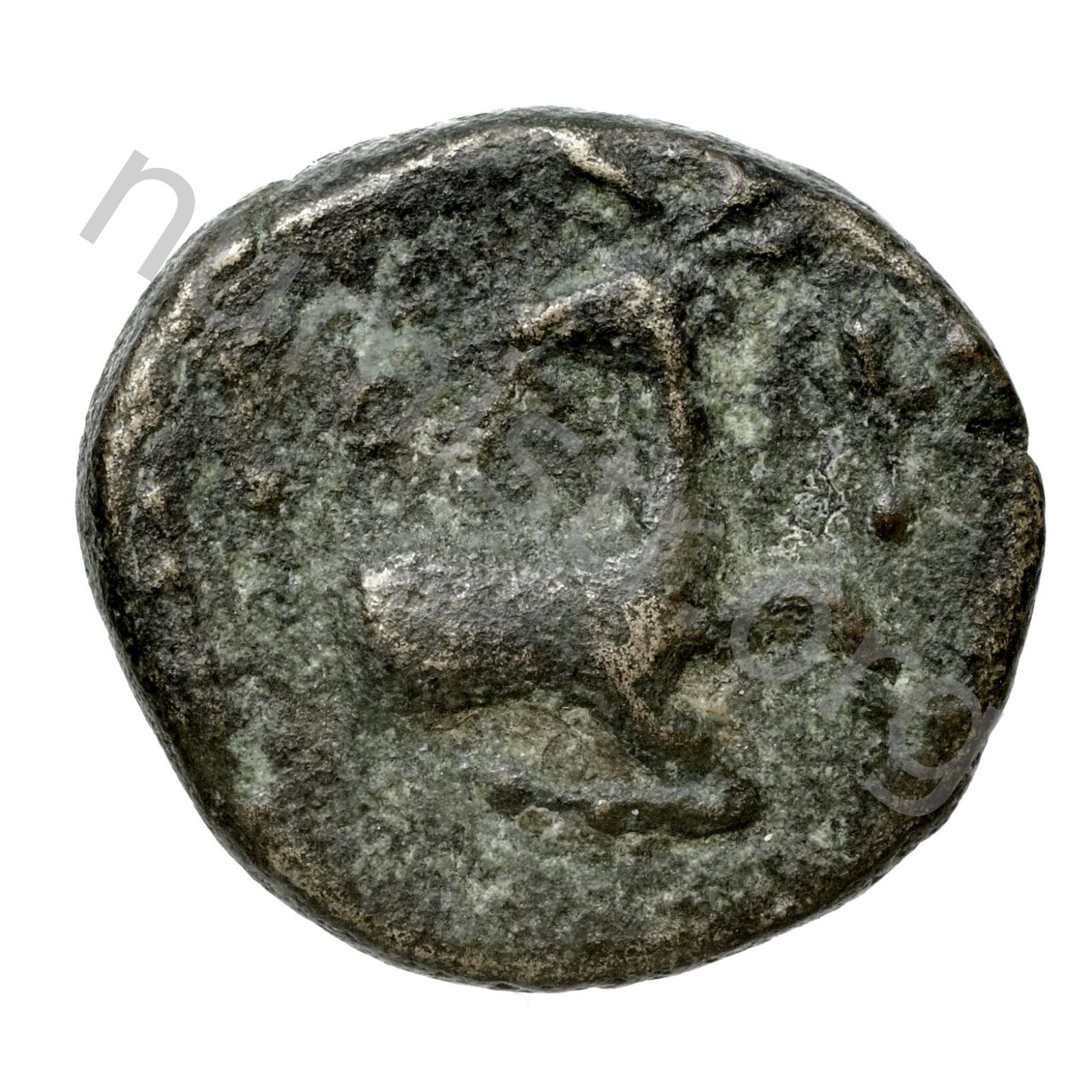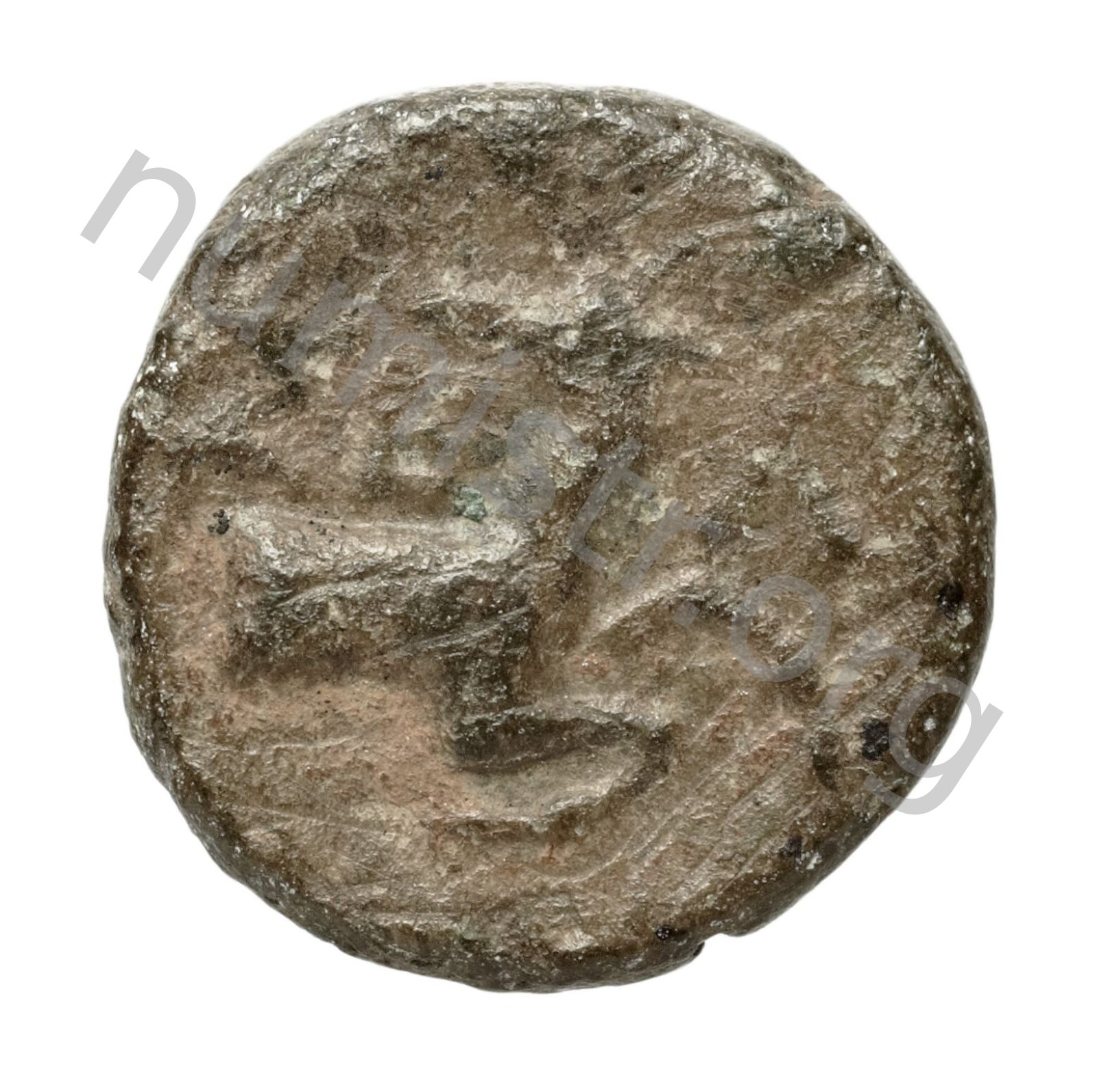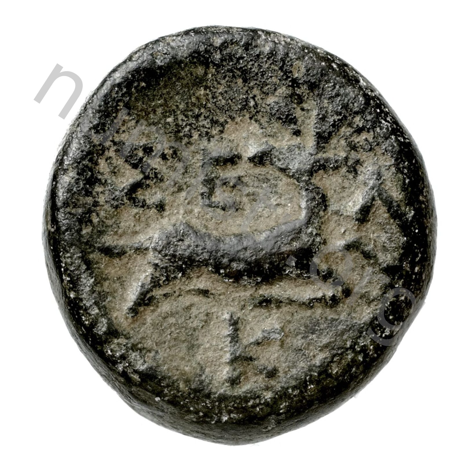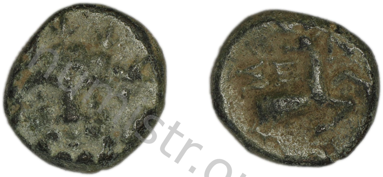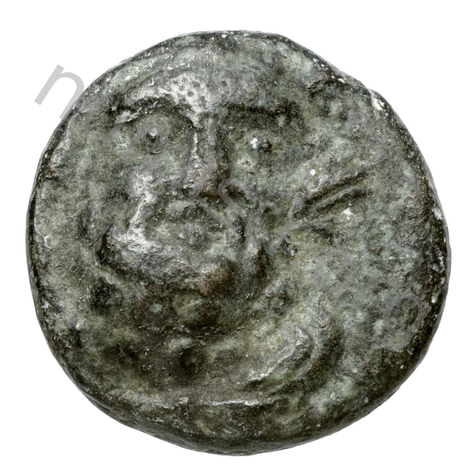 Head of Heracles facing wearing a laurel wreath; in the field a club -[en]