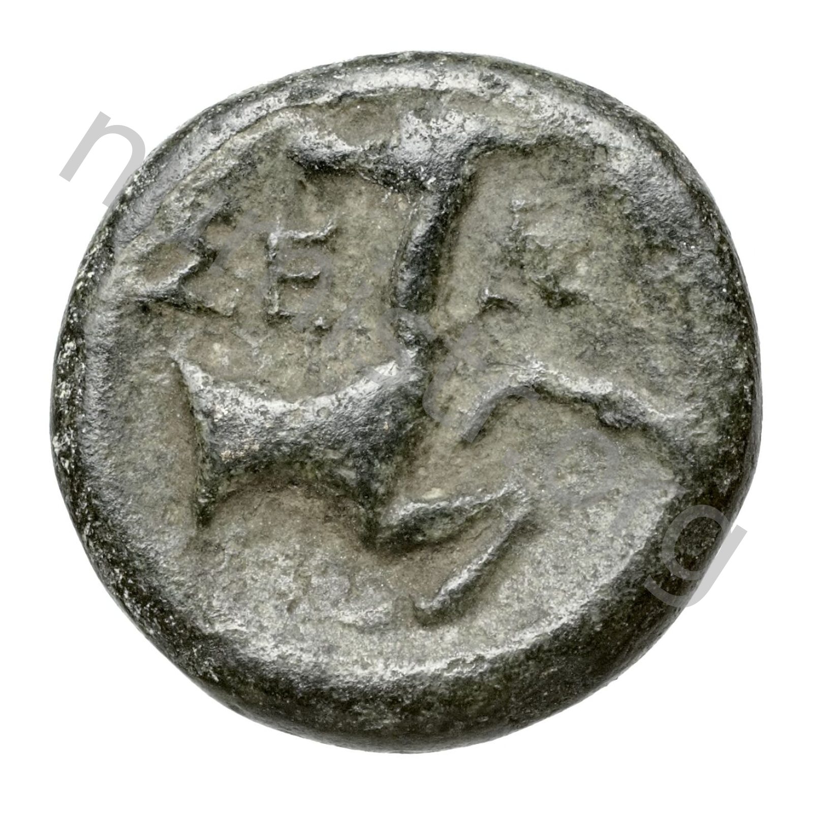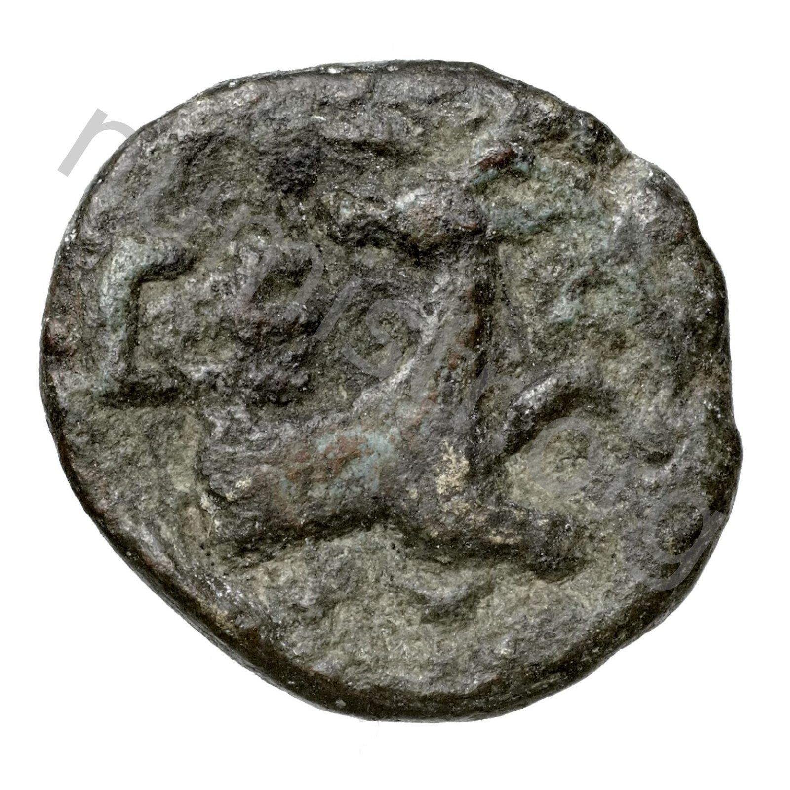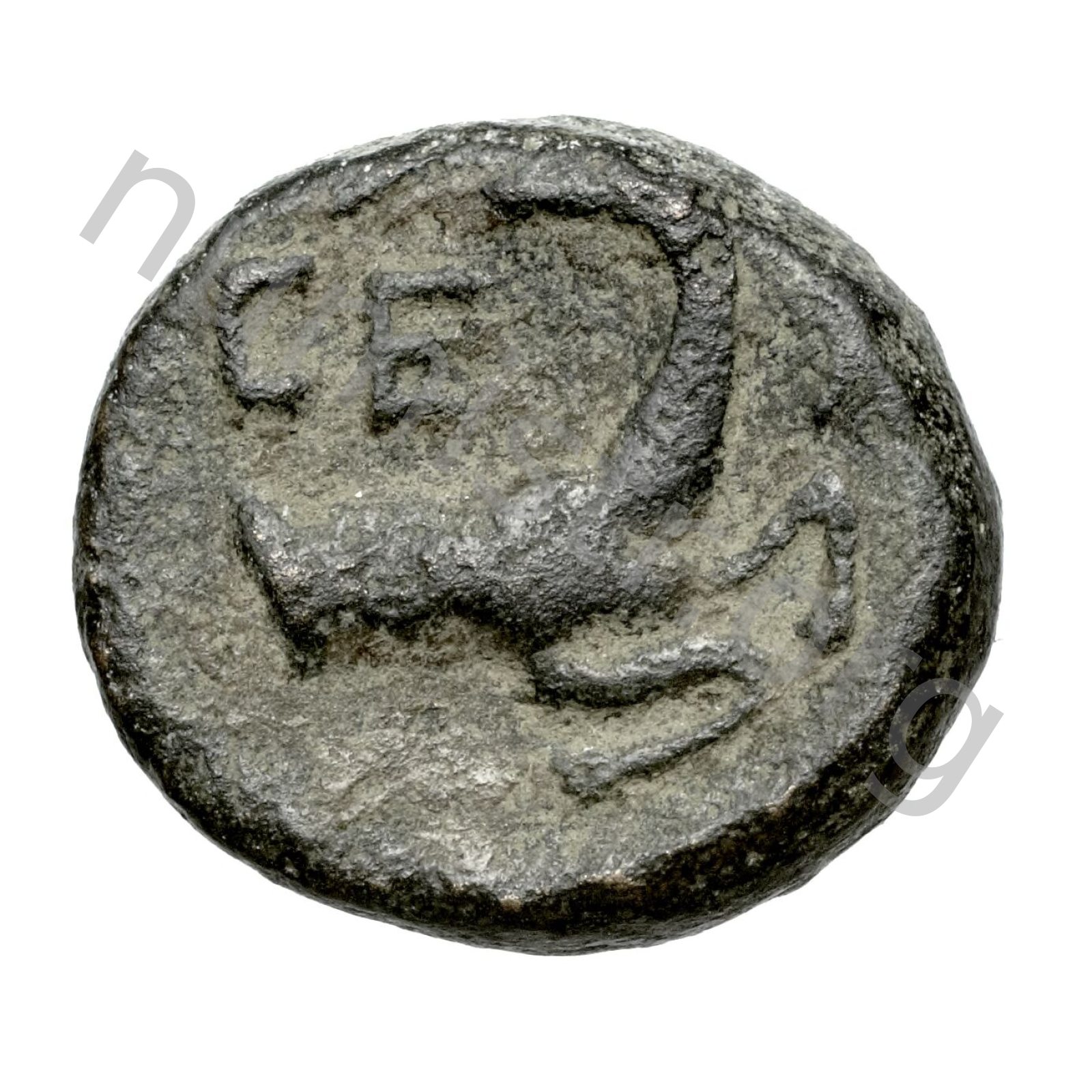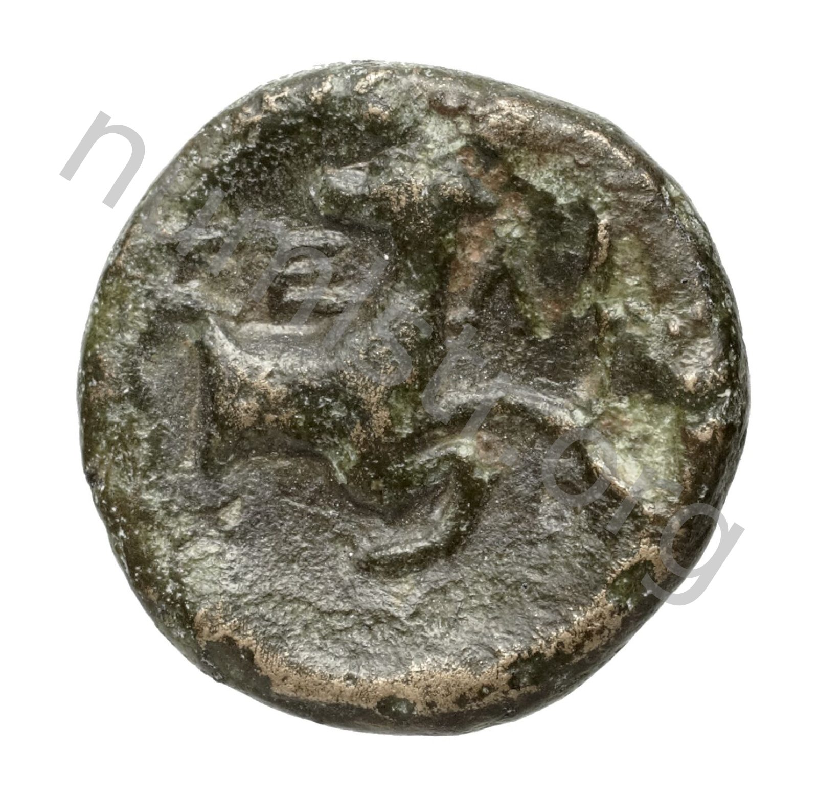 Head of Heracles facing wearing a laurel wreath; in the field a club -[en]